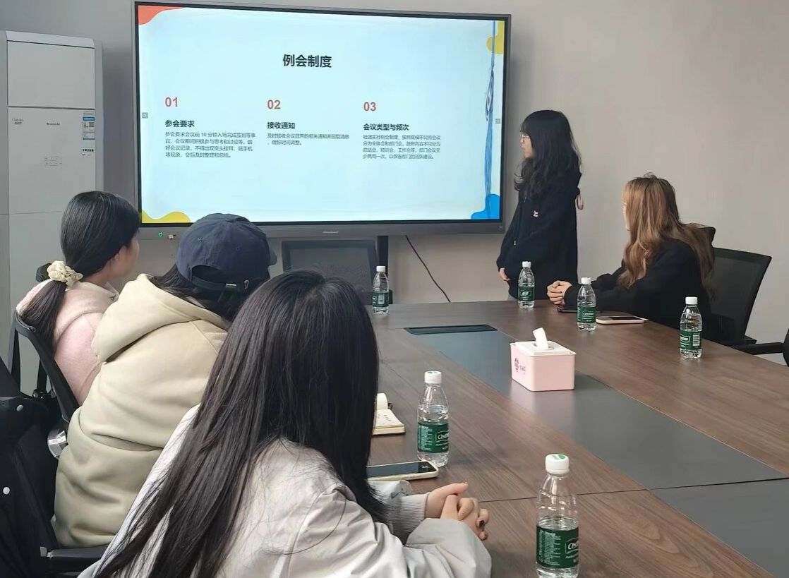 随后,各部门负责人结合具体职能与实例,展开生动详实的工作分享。理事长办公室从制度规范与日常事务入手,细致介绍了例会制度、值班要求等内容,于细节中传递效率与责任。宣传部部长则在郭老师讲解基础上,聚焦“新闻排版技巧与模板应用”,助力每一篇推送兼顾视觉美观与阅读体验。外联部则围绕“校友联络、校史讲解”等核心职责,明确了服务校友、促进联动的部门定位。通过梳理,各部门不仅划清了工作边界,也强化了“分工协作、聚力同行”的团队意识。