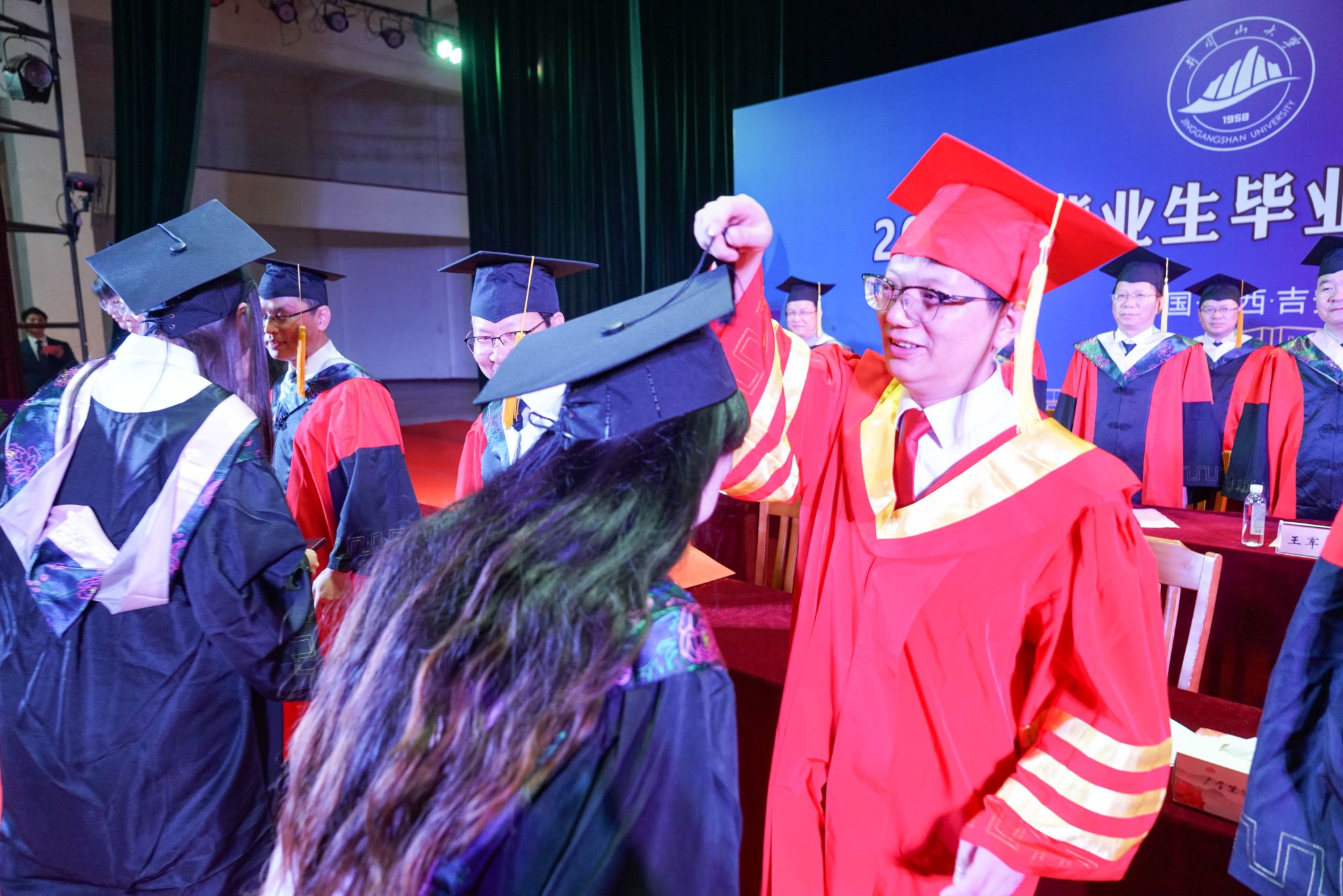 典礼上,校领导分别为研究生、本科生以及留学生毕业生代表颁发毕业证书。