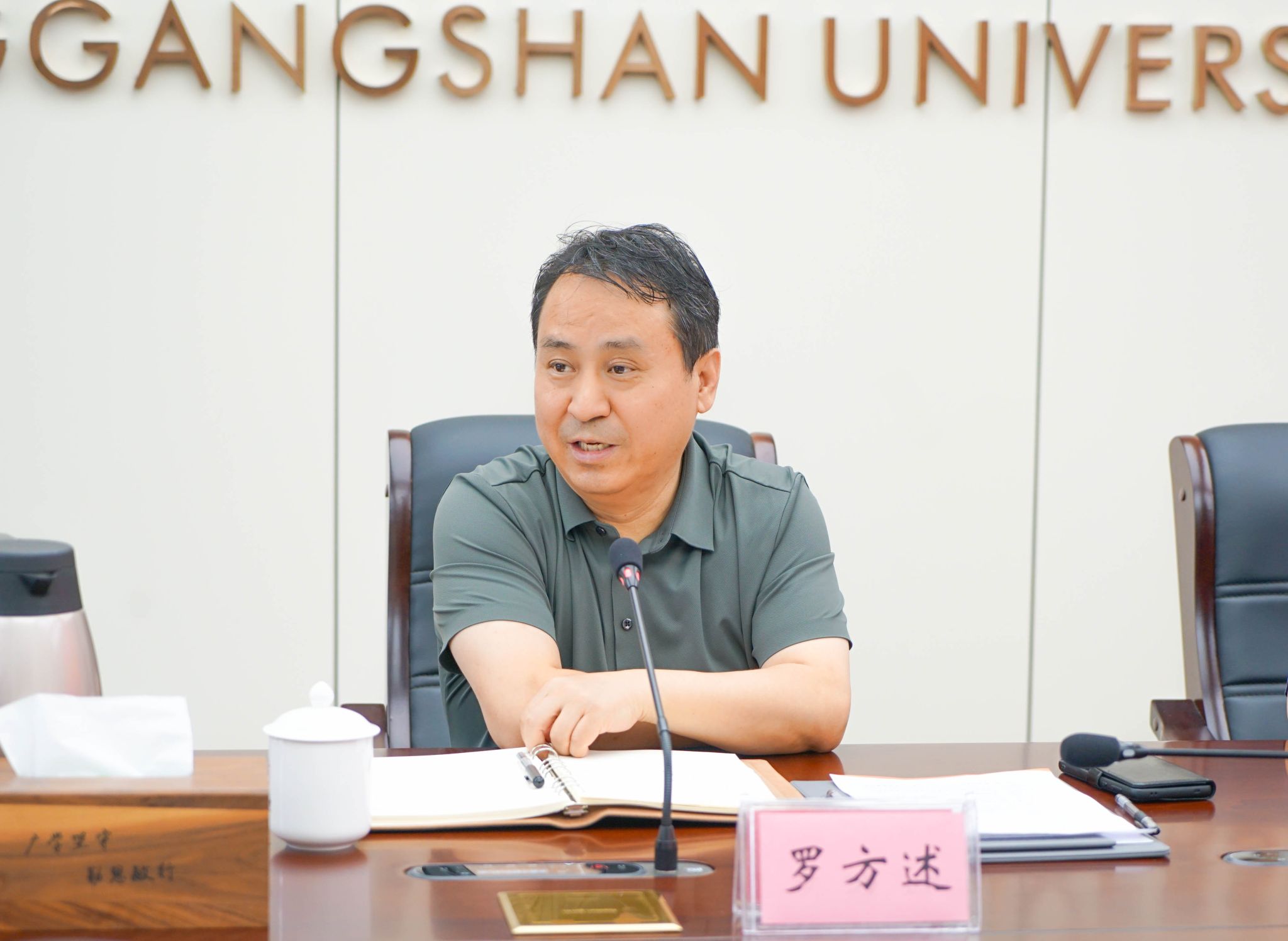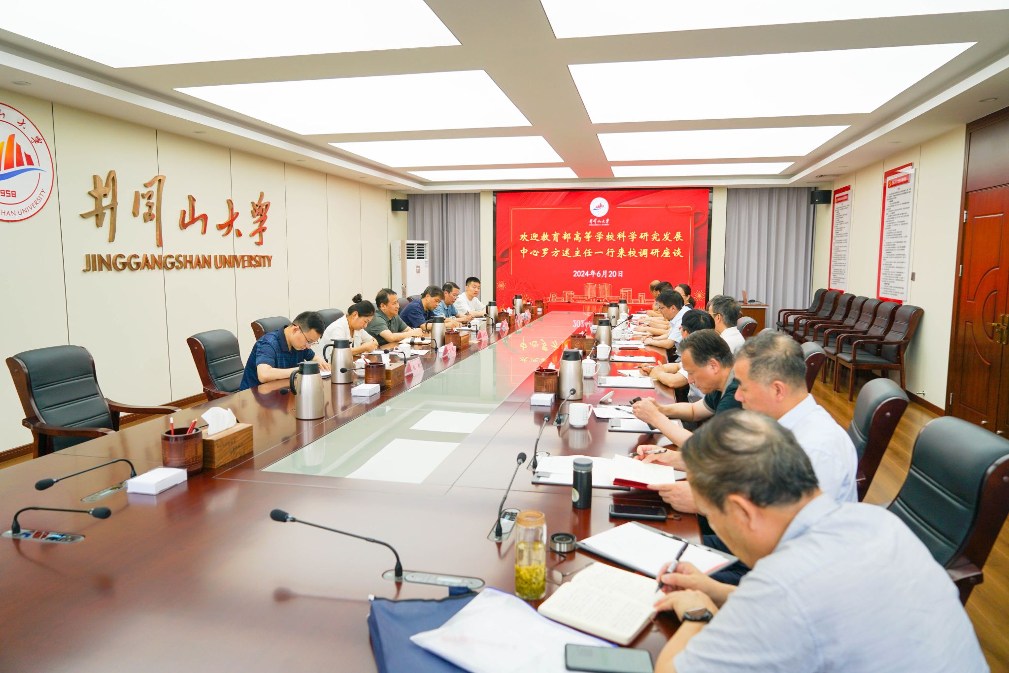 6月20日下午,教育部高等学校科学研究发展中心主任罗方述一行来校调研座谈,校党委副书记、校长罗旭彪,校党委常委、副校长敖四江出席座谈会。井冈山大学原校长、教育部人文社科重点研究基地井冈山大学中国共产党革命精神与文化资源研究中心主任张泰城教授,科研处和井冈山研究中心负责人等参加了会议。
