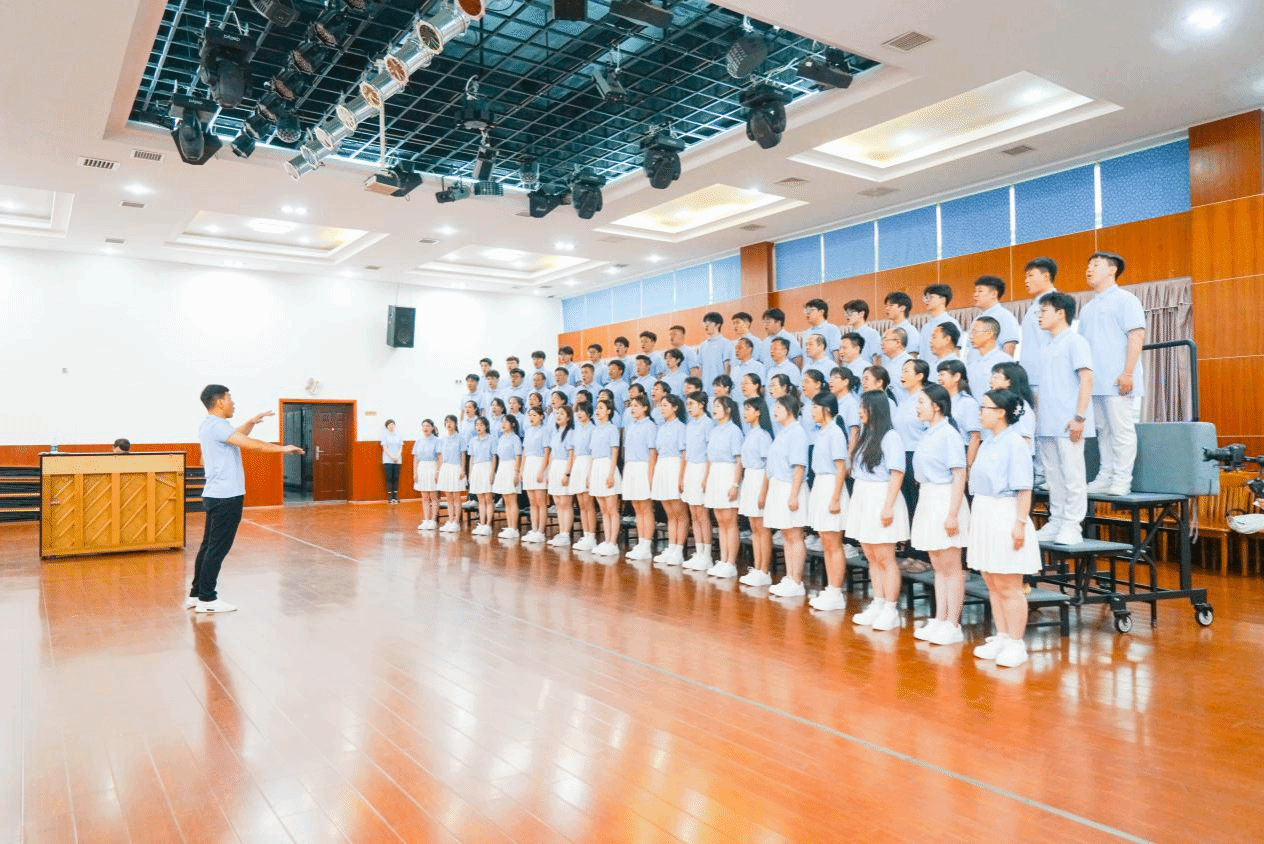 合唱团成员们身着统一的服装,整齐地站在舞台上排练,他们的脸上洋溢着自信与期待。