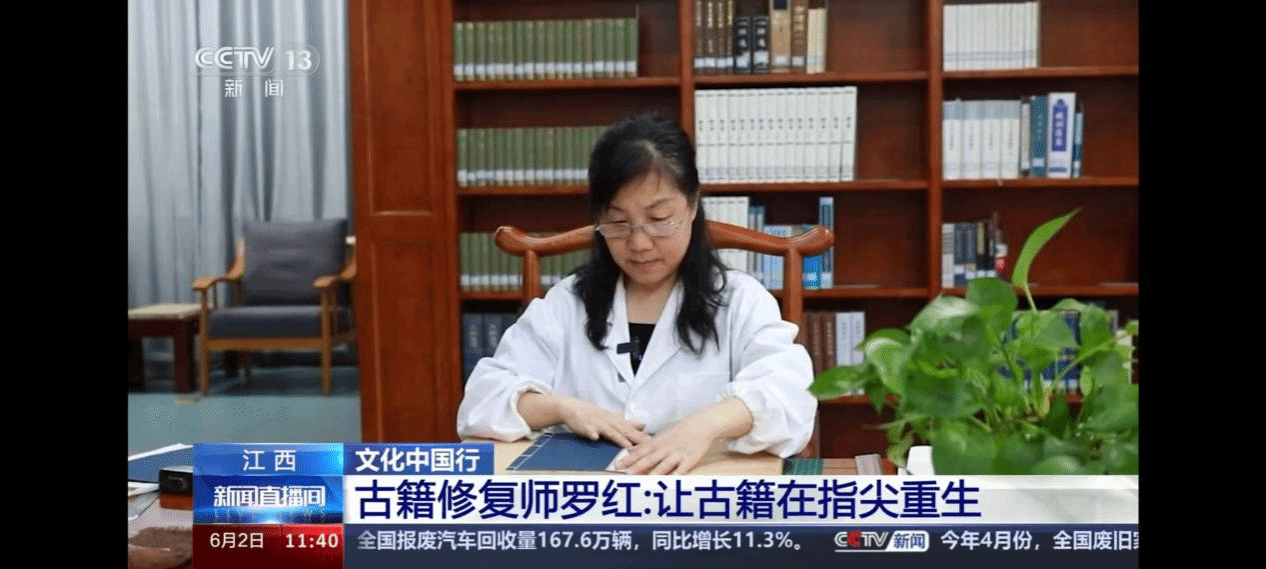 6月2日,央视新闻直播间文化中国行以《井冈山大学古籍修复师罗红 让古籍在指尖重生》为题报道了我校图书馆古籍修复师罗红老师的事迹。