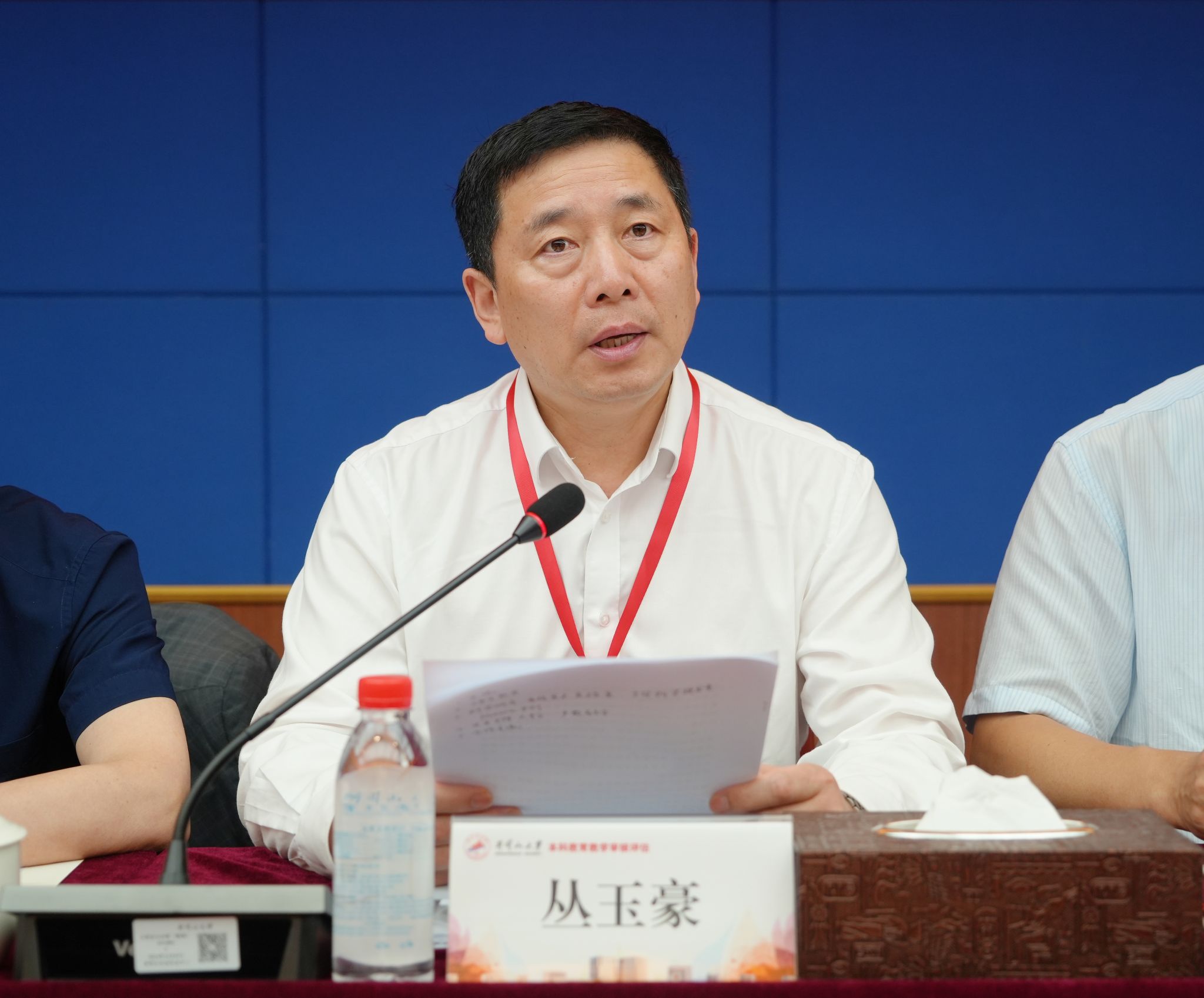 丛玉豪介绍了入校评估专家情况,代表专家组就学校线上评估的有关情况作了回顾,并就入校评估工作安排作简要介绍。他指出,提升本科教育教学质量是高等教育永恒的主题,本科教育教学是人才培养最重要的基础,也是最能体现一所学校传统和特色的地方。审核评估即是对学校立德树人成效和本科人才培养质量的一次全面检阅。也是学校总结办学经验、深化教育教学改革、凝练人才培养特色,进一步打造育人品牌、提升人才培养质量的一次重要契机。专家组依据指标体系和评估实施方案,坚持对标对表,坚持全面把脉,对井冈山大学的办学方向与本科定位、培养过程、教学资源与利用、实施队伍、学生发展、质量改进、教学成效等进行了全面细致的考察评估工作。丛玉豪对学校深化本次审核评估工作提出三点要求,一是要落实好新一轮审核评估16字方针,学校要贯彻落实好以评促建、以评促改、以评促强、以评促管、以评促强的理念。将审核评估与学校未来高质量发展相结合,推动学校强化自我改进擦亮办学特色,结合自身办学定位和优势,将高质量发展理念融入教育教学全过程、各环节,实现高质量、内涵式发展。二是要坚持问题导向,深入考察,重点求证。根据专家组聚焦线上阶段发现的需要进一步入校考察的问题,深入考察,找准问题症结,共商破题之策。三是着眼促进发展,查找问题与发掘特色并重。入校专家组将严格遵守评估纪律,认真履行专家职责,实事求是的全面考察、客观评价。以质量共同体理念,通过思想再认识、目标再聚焦、行动再精准,高质量、高水平圆满完成井冈山大学审核评估工作。