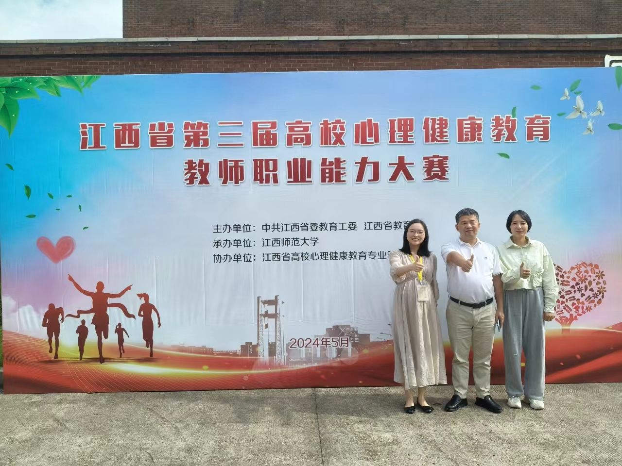 在由省教育厅主办的2024年江西省大学生“5·25”心理健康教育系列活动中,我校心理健康教育与咨询工作创佳绩,心理健康教育教师胡婷、冯宇分别获得全省第三届高校心理健康教育教师职业能力大赛一等奖和二奖奖,我校推选的心理情景剧《彩绘青春》获全省第二届高校校园心理情景剧大赛三等奖。