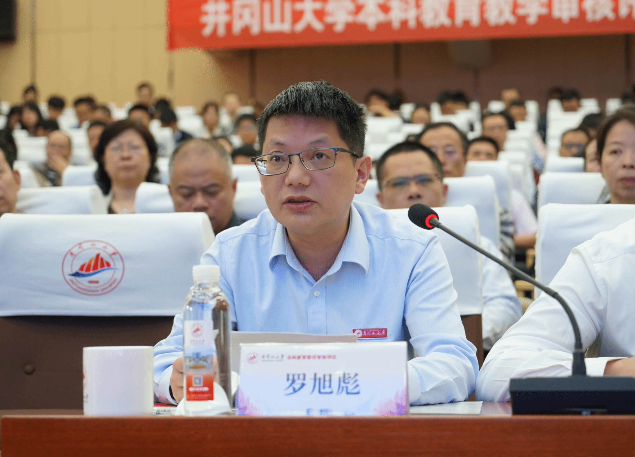 罗旭彪代表学校作表态发言。他首先感谢专家组对我校本科教育教学工作的“把脉问诊”和省教育厅、省教育评估监测研究院的关心帮助。他表示,专家组指出的问题全面精准客观,反馈的意见建议高屋建瓴,为学校进一步凝练办学特色,深化教育教学改革创新,提高人才培养质量,指明了方向、理清了思路、找准了发力点,具有很强的操作性、实践性、有效性。对于这些意见,我们将诚恳接受、坚决整改。学校将提高站位、聚焦问题、强化特色,着力人才培养和本科教育教学中心工作,着眼人才培养长效机制建设,切实实现“以评促建、以评促改、以评促管、以评促强”的评估目标,坚决做好审核评估的“后半篇文章”,努力推动学校本科教育教学工作再上新台阶,为奋力谱写中国式现代化江西篇章贡献井大力量。