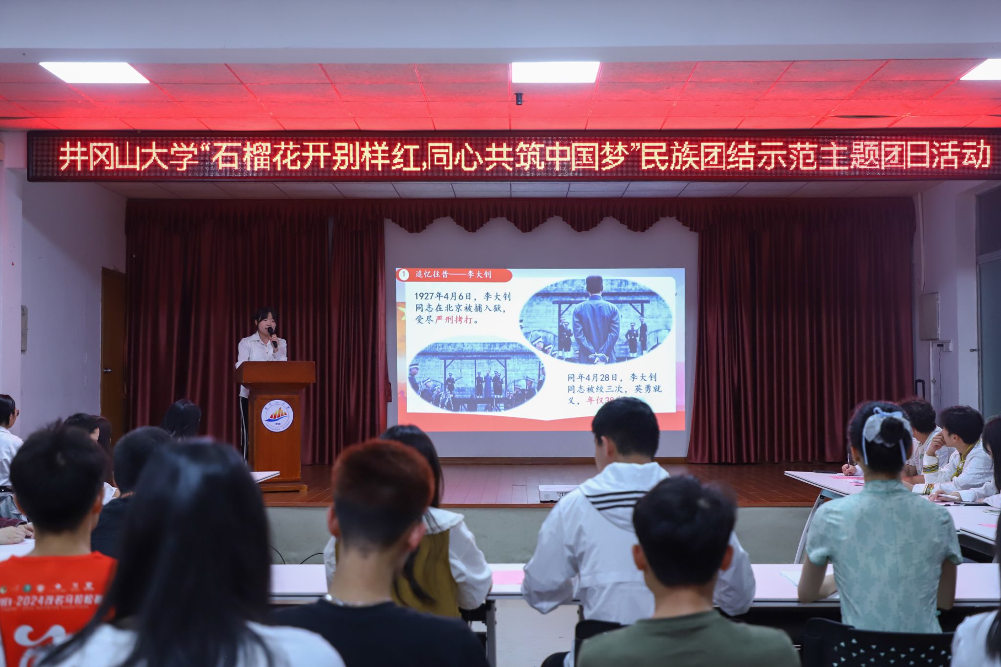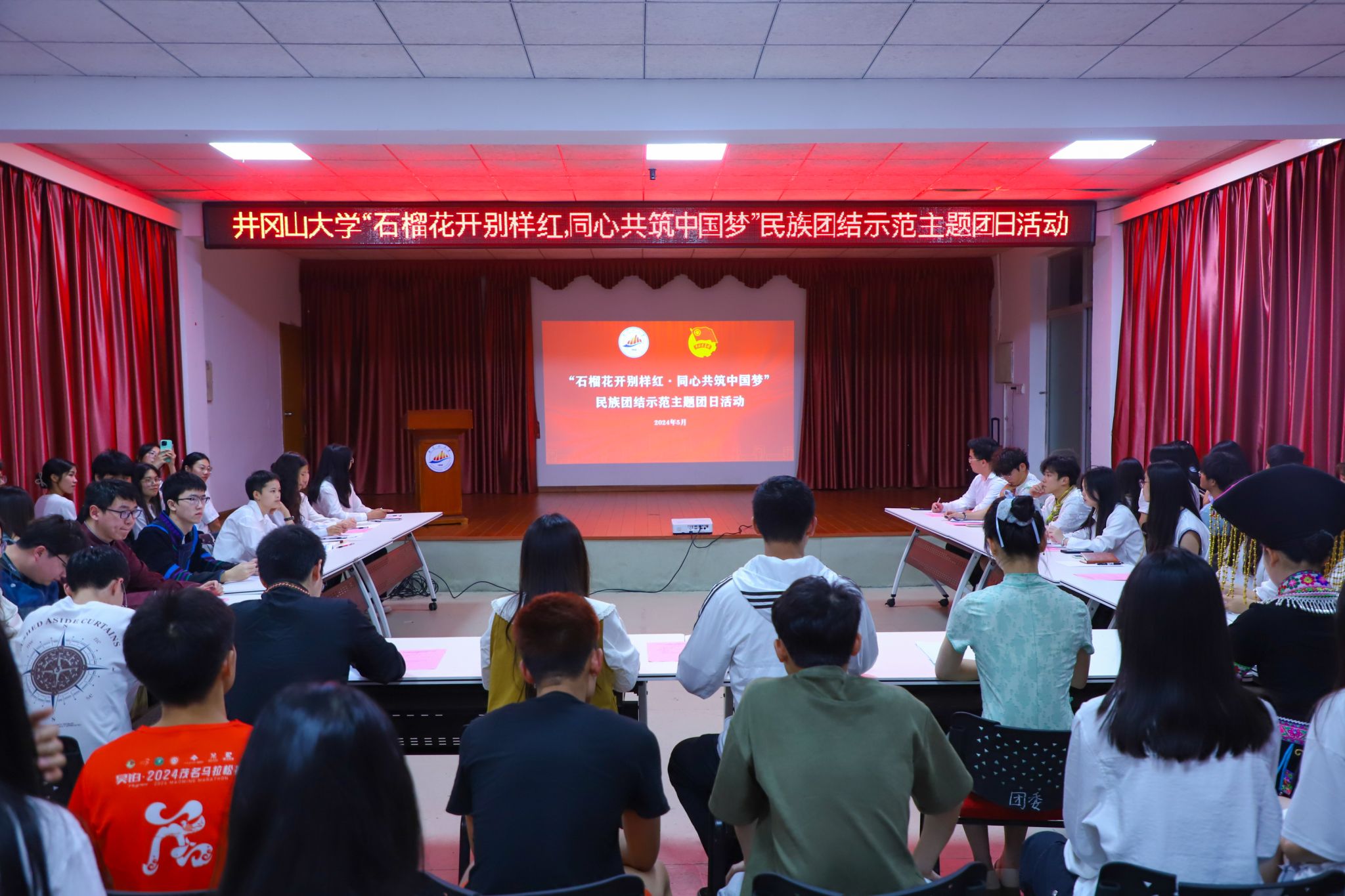 石榴花开,籽籽同心,民族团结一家亲。为深入贯彻落实习近平总书记关于民族工作的重要论述,促进各民族青年学生交往交流交融,引导青年学生进一步铸牢中华民族共同体意识,5月13日晚,井冈山大学团委开展了“石榴花开别样红·同心共筑中国梦”民族团结示范主题团日活动。全校先进青年代表、团员青年代表、少数民族学生代表、入团积极分子代表200余人参加活动。