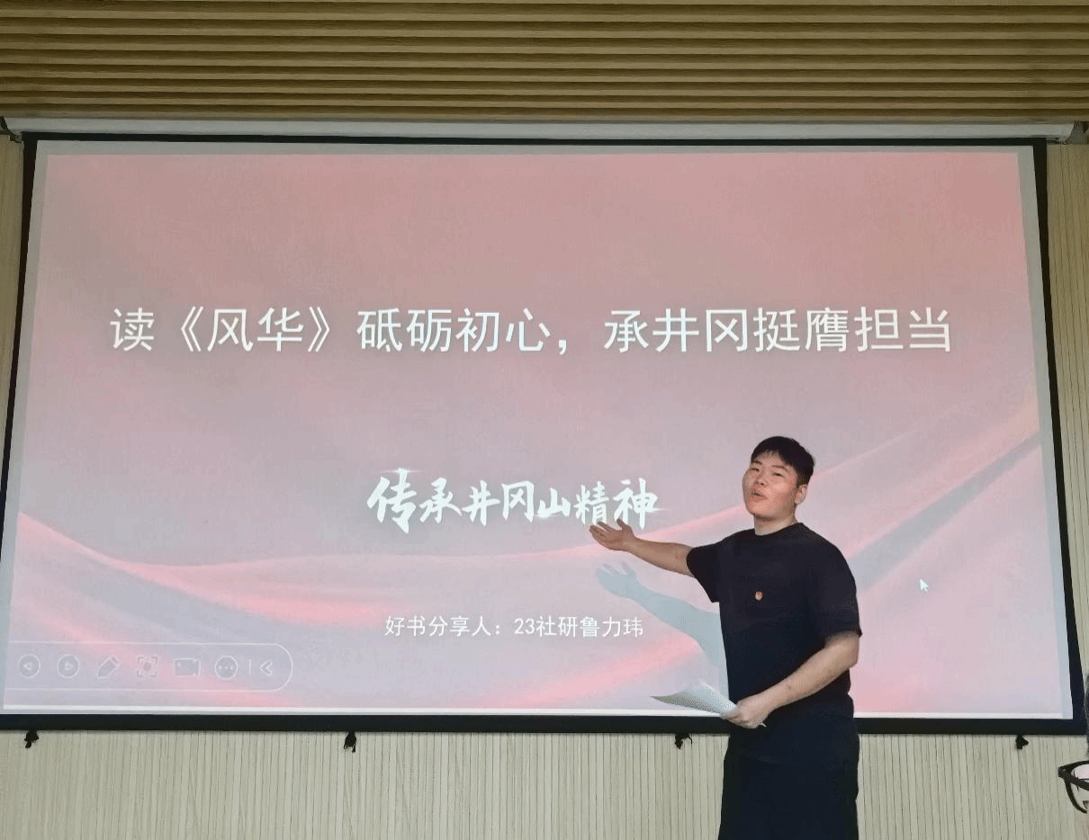 鲁力玮同学向大家推荐了《风华》,他在慷慨激昂的演讲中流露对祖国的爱和对革命先辈的敬畏,引领大家“弘扬井冈山精神,挺膺时代担当”。