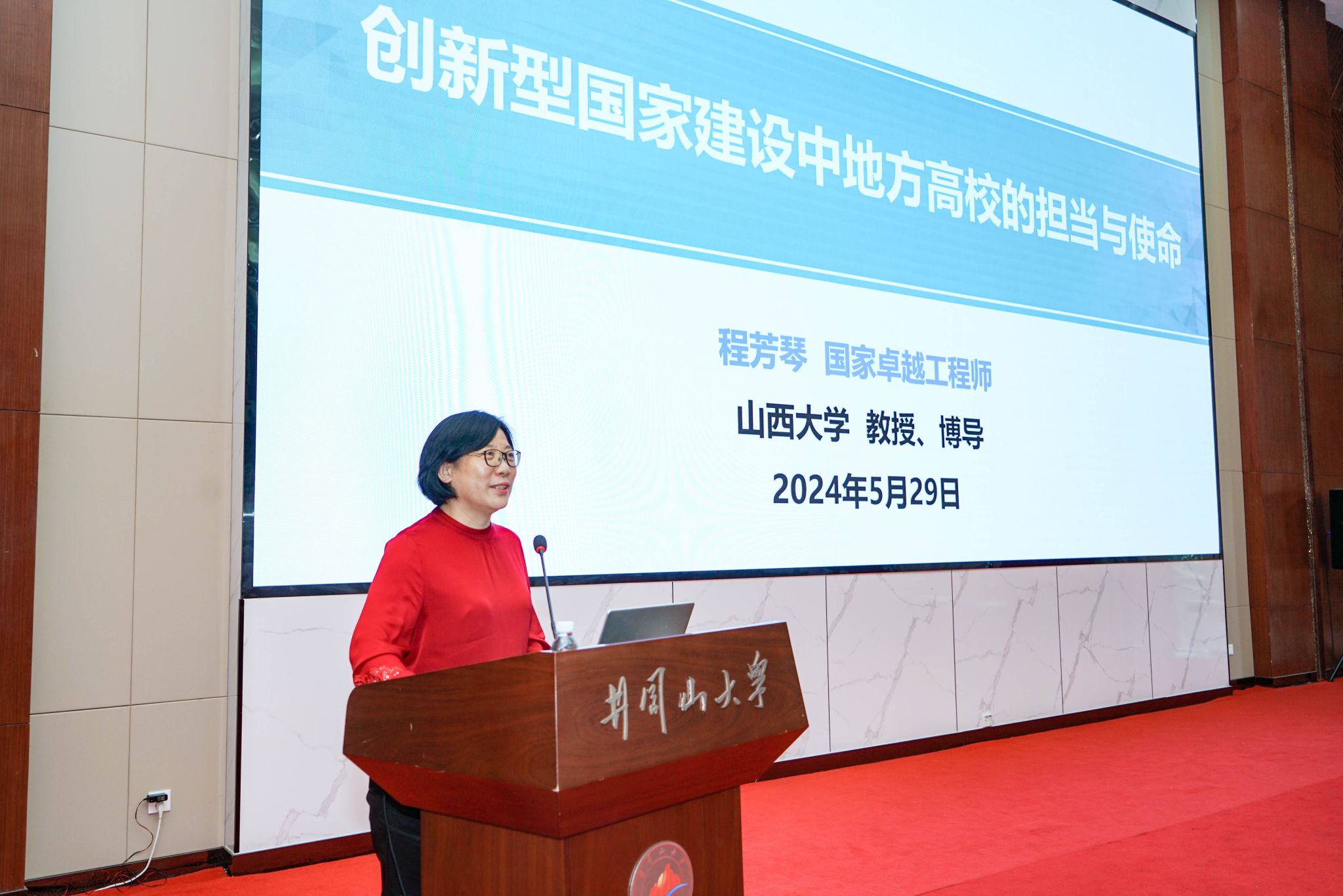 程芳琴以“创新型国家建设中地方高校的担当与使命”为题,提出要将创新理念融入人才培养全过程,加强产学研深度融合,推动科技成果转化与应用。她指出,地方高校作为培养创新人才的重要基地,应当积极担当起社会责任,为创新型国家建设贡献力量。程芳琴强调了科研团队和平台建设的重要性,鼓励师生参与重大科研项目,提升学校的整体科研水平。