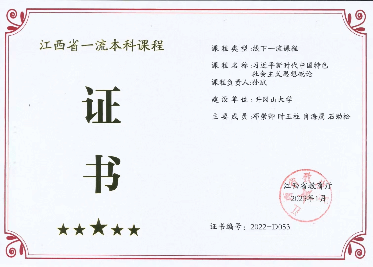 持续推进思政课改革创新,将红色文化优势转化为教育教学资源优势。学院充分利用井冈山红色资源优势,着力打造“主体课堂、实践课堂、环境课堂”有机融合的“三维一体”思政金课。学院获教育部家门口的“大思政课”实践教学基地结对项目,获批江西省大中小学思政课一体化共同体试点建设项目,获批江西省高校思政课实践教学和社会实践学分(学时)互认机制试点项目,红色资源融入“大思政课”教学改革创新团队获批江西省高校思政课教学改革创新团队,“永远的井冈山”思政课教学团队获批江西省高水平本科教学团队,《习近平新时代中国特色社会主义思想概论》获批江西省线下课程一流本科课程,“黄洋界保卫战”虚拟仿真项目获批江西省虚拟仿真实验教学一流课程,获批江西省“专题+艺术”特色思政课。