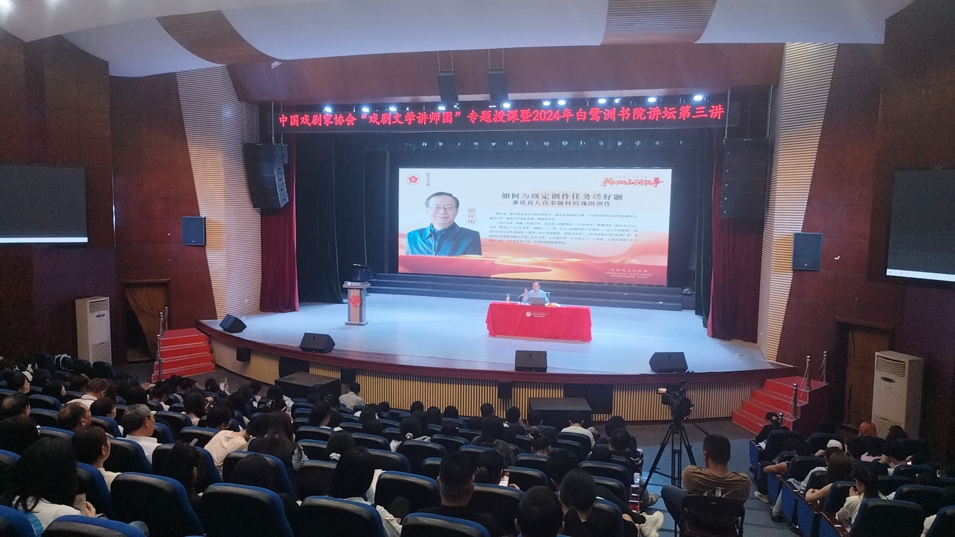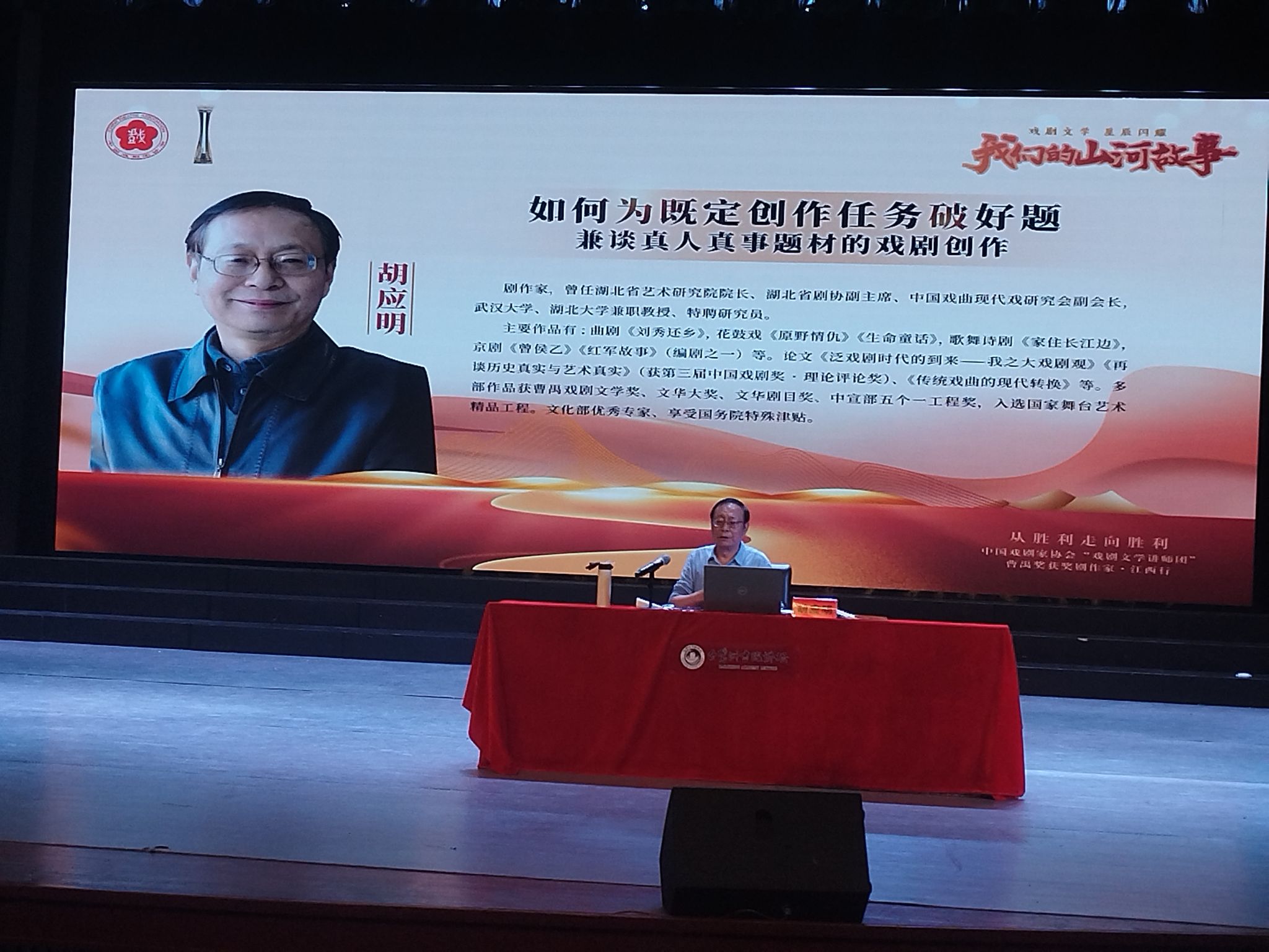 4月24日下午,国家一级编剧、第十届曹禺戏剧文学奖获得者胡应明到我校开展题为“如何为既定创作任务破好题兼谈真人真事题材的戏剧创作”的主题讲座,校党委常委、副校长敖四江出席活动并与胡应明进行了交流。本次讲座也是中国戏剧家协会“戏剧文学讲师团”专题授课暨白鹭洲书院讲坛第三讲。