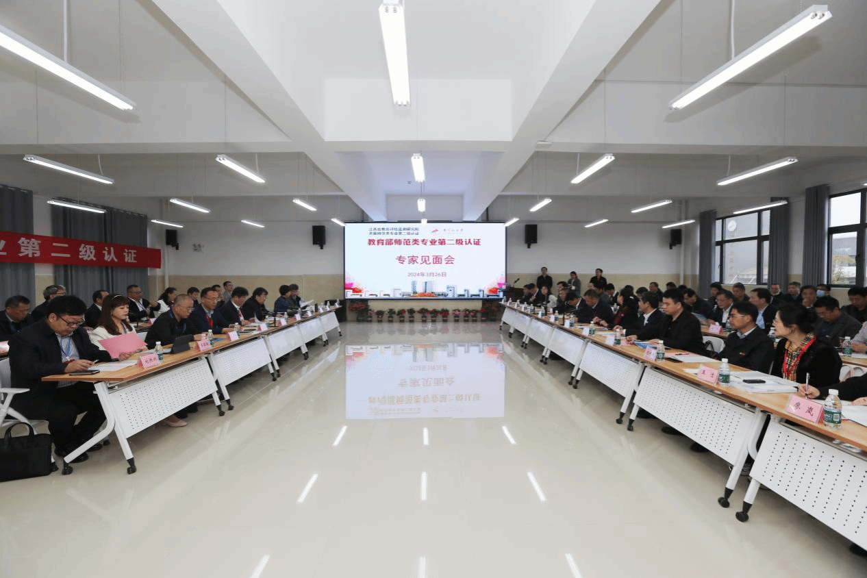 为全面贯彻党的教育方针,落实立德树人根本任务,真正做到以评促建、以评促改、以评促管、以评促强,3月26日上午,学校召开2024年第二级认证联合进校考查专家见面会。联合认证专家组长、阜阳师范大学党委书记程曦,美术学专业组组长、华中师范大学美术学院教授王文新,历史学专业组组长广西师范大学原教务处处长、教授周长山,思想政治教育专业组组长、河北师范大学教师教育学院研究员赵夫辰等联合认证专家组20人,江西省教育评估监测研究院党委副书记、院长丁国华,江西省教育评估监测研究院高教所所长罗运锋等出席。出席见面会的还有,校党委书记胡春晓,党委副书记、校长罗旭彪,党委副书记肖宜安,党委常委、副校长李军、刘利民、冷明、廖岚、 党委常委、纪委书记彭西洪,党委常委、宣传部部长肖洪海,党委常委、统战部部长刘梁军,党委常委、组织部部长梁景宏。教务处、教育评估中心、认证专业所在学院的相关负责人,以及其他相关职能部门负责人参加会议。