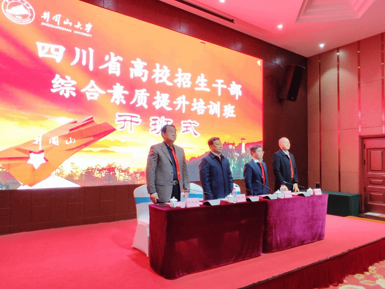为深入学习贯彻习近平新时代中国特色社会主义思想,3月10日,四川省高校招生管理人员综合素质提升培训班在我校开班,井冈山大学党委副书记肖宜安为培训班致辞并授旗,四川省教育考试院党委委员张刚、四川省招生考试指导中心主任刘平讲话,开班式由井冈山大学继续教育与培训学院院长贺晓斌主持,全体学员参加了开班式。