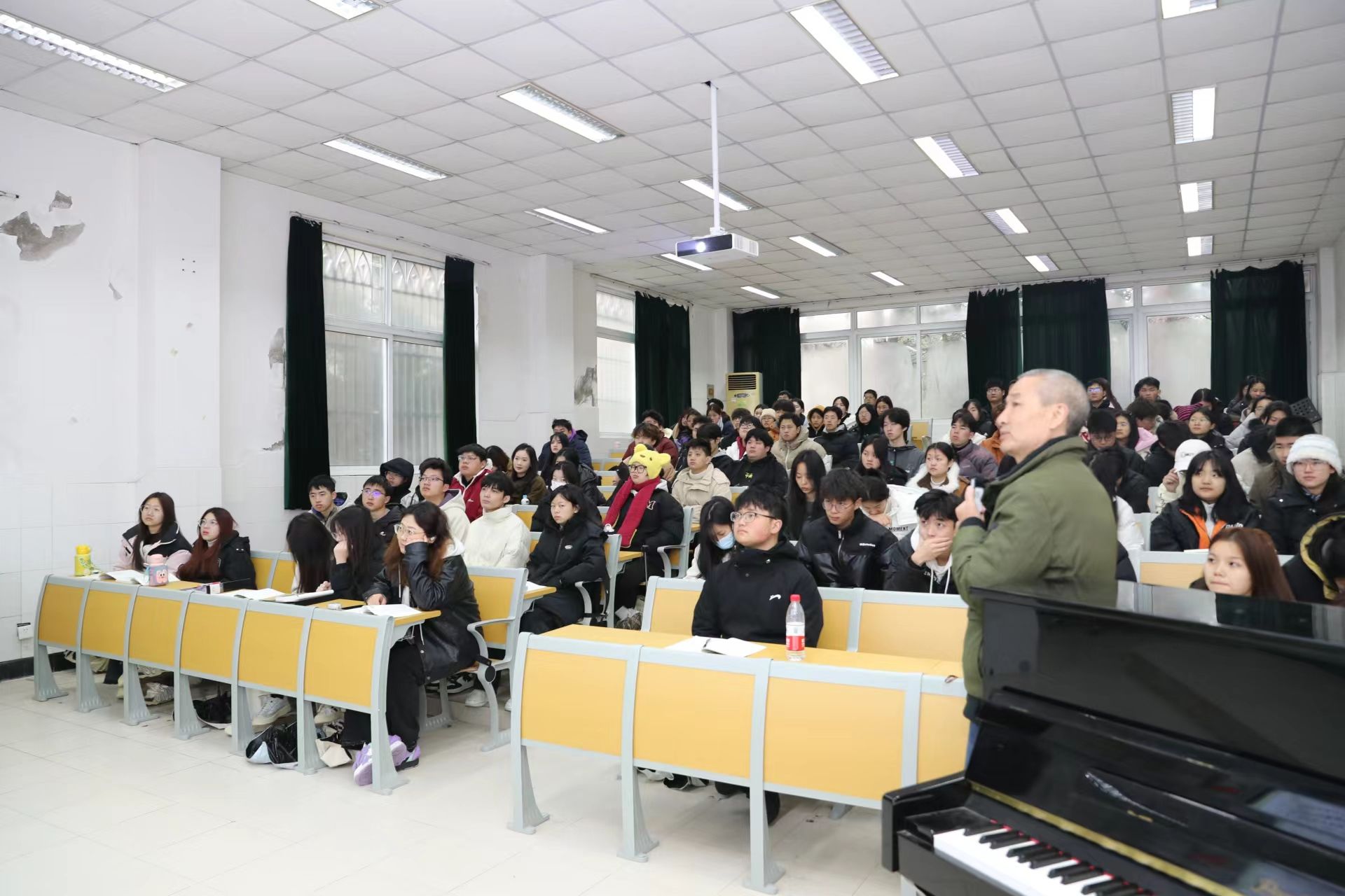 校党委副书记、校长罗旭彪来到8栋教学楼,走进马克思主义学院杨唐盛老师的“思想道德与法治”课堂,与2023级音乐学专业的学生们一起听课。罗旭彪在听课的同时,认真做好听课笔记,并写下课堂点评。课后罗旭彪与杨唐盛互动交流,并对杨唐盛的教学方法进行指导。