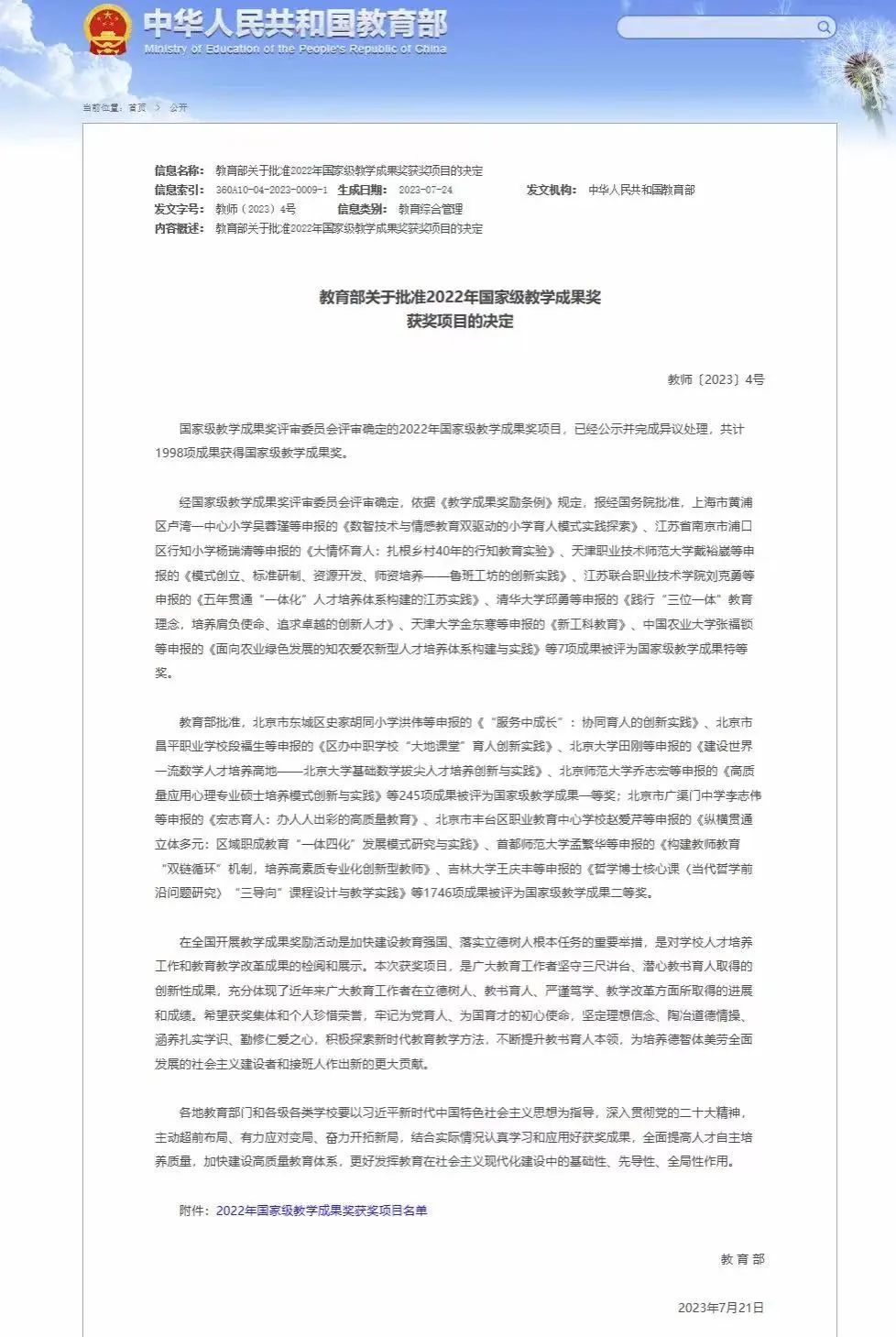 三、教学改革研究项目、课程建设和教学竞赛有新突破,获批国家级教学成果奖二等奖1项和省级教学成果奖特等奖2项