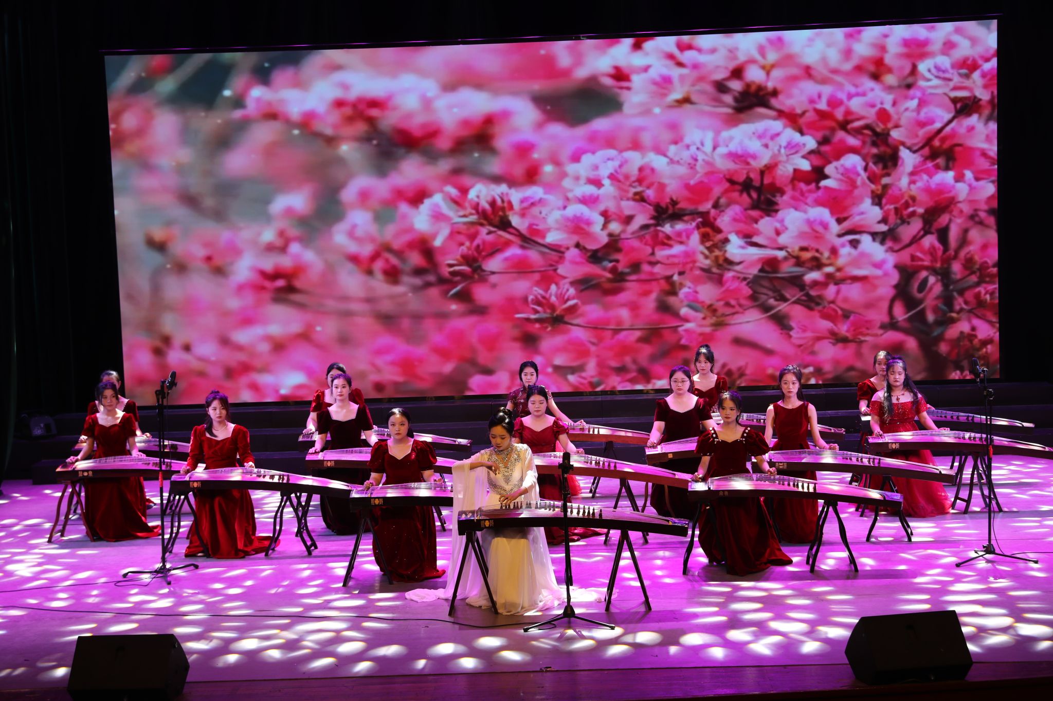 音乐会共演绎了13个艺术作品。管乐合奏《春节序曲》拉开了音乐会的序幕,欢快悦耳的管乐表达了人民对于幸福生活的赞美和对美好明天的憧憬。美声独唱《我爱你中国》,美声合唱《领航》,混声合唱《忆秦娥.娄山关》《没有共产党,就没有新中国》,古筝合奏《井冈山上太阳红》等经典作品,具有深刻的思想内涵和浓郁的情感表达,表达了对革命前辈的崇敬,对党的忠诚和对祖国的热爱,激发观众的爱国热情和民族自豪感。学生合唱《逆光》,管乐重奏《第二圆舞曲》、芭蕾舞剧《巴赫塔》选段,原创朝鲜族舞稻《乐·游》、群舞《欢乐的乌兰牧骑》、双人舞《湘君湘夫人》等作品既展示青年师生的才华和创新精神,也表达他们对未来的期待和对生活的热爱。