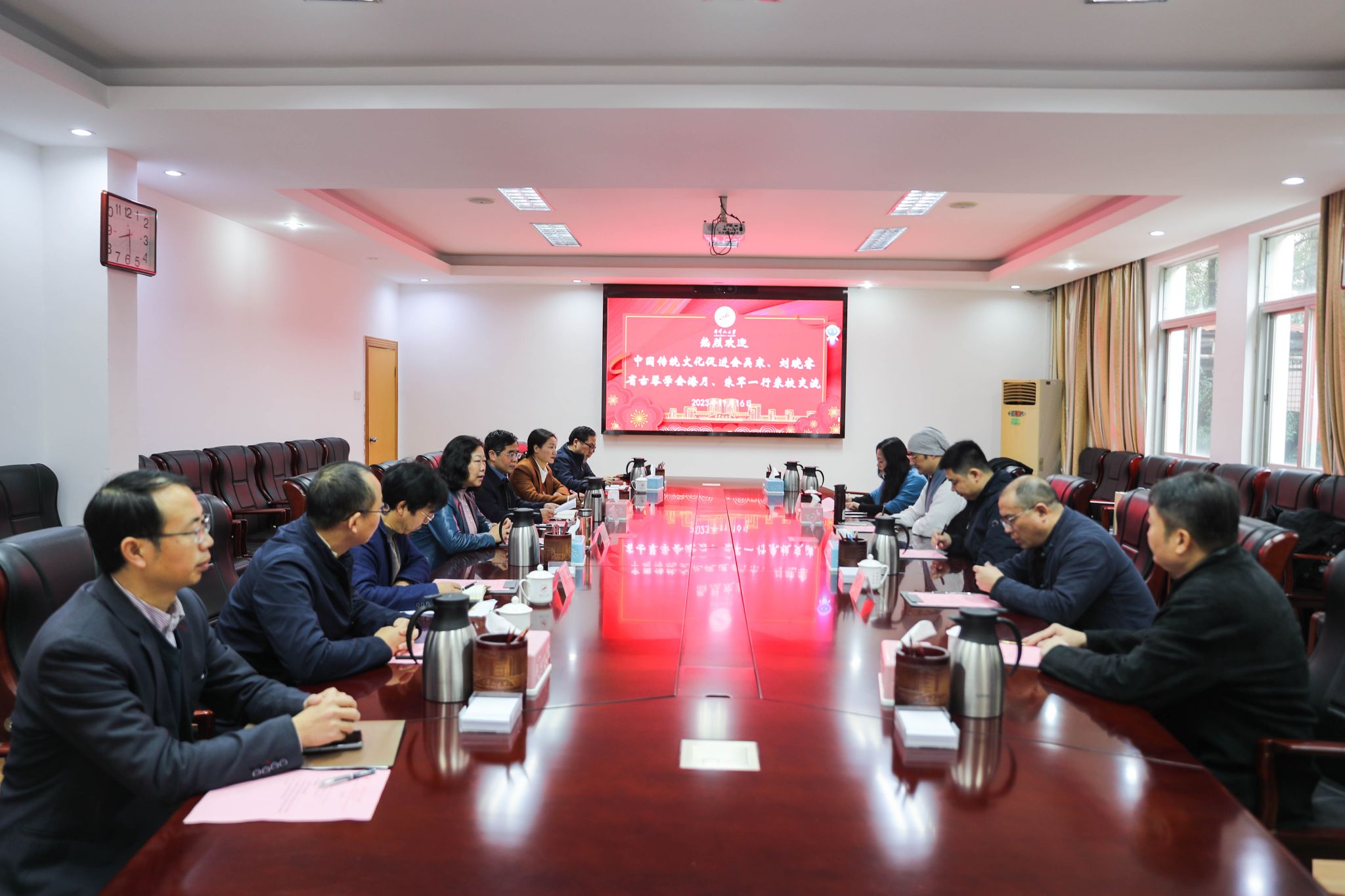 为传承中华优秀传统文化, 11月16日上午,我校与江西省古琴学会举行古琴文献研究所建设会议。校党委书记胡春晓,中国传统文化促进会古琴文化艺术委员会主任吴寒出席并讲话。校党委副书记肖宜安,中国传统文化促进会古琴文化艺术委员会副主任刘晓睿,江西省古琴学会会长海月、秘书长朱军等出席。