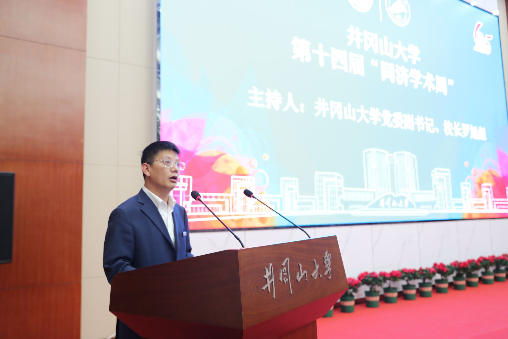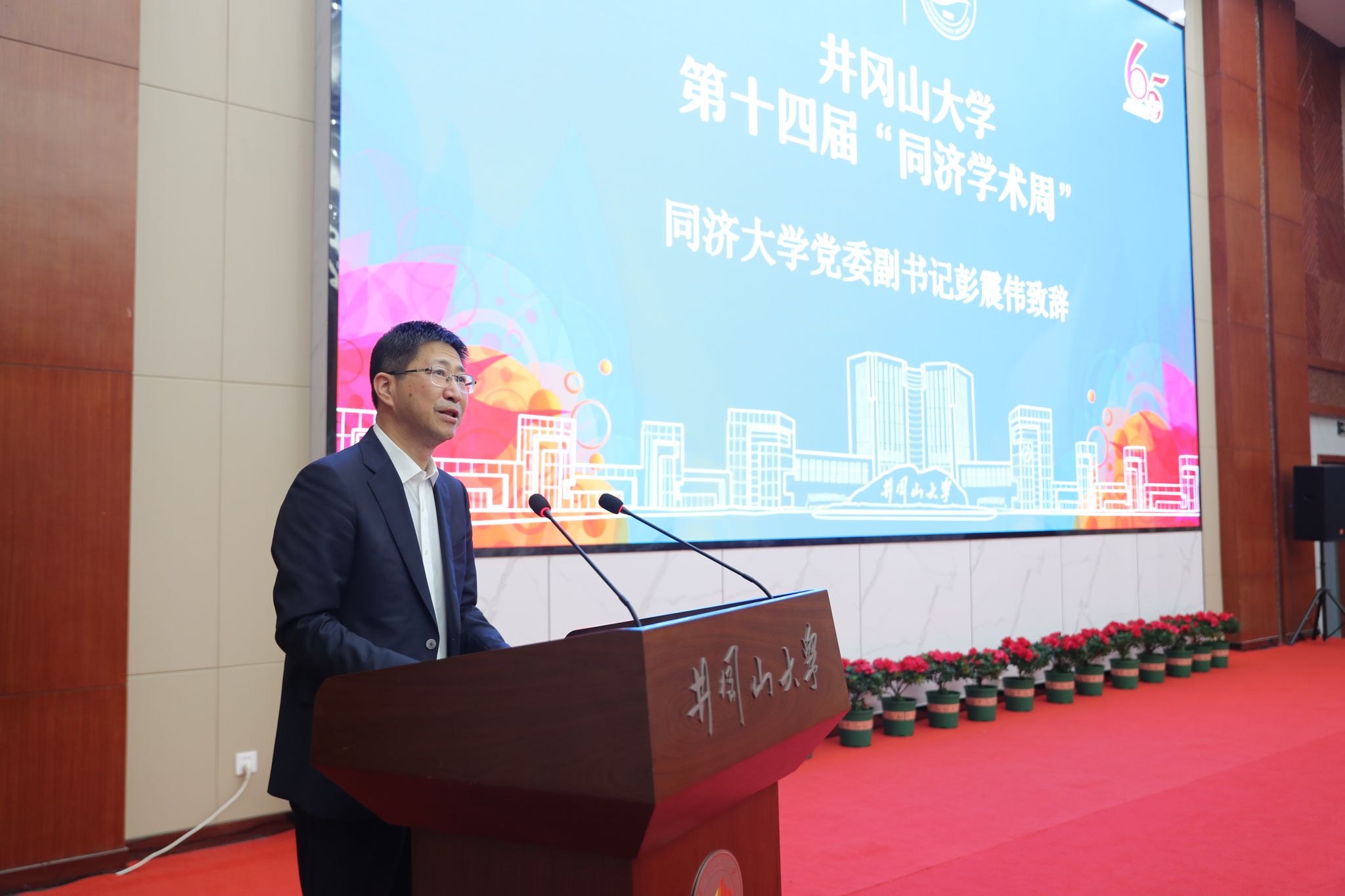 10月27日,井冈山大学第十四届“同济学术周”开幕式举行,本届学术周主题为“破瓶颈、强能力,开拓井冈山大学高质量发展新局面”。同济大学党委副书记彭震伟、井冈山大学党委书记胡春晓分别致辞,井冈山大学党委副书记、校长罗旭彪主持,井冈山大学全体在家校领导、各单位及学院主要负责人,同济大学校办、发展规划部相关负责人出席开幕式。