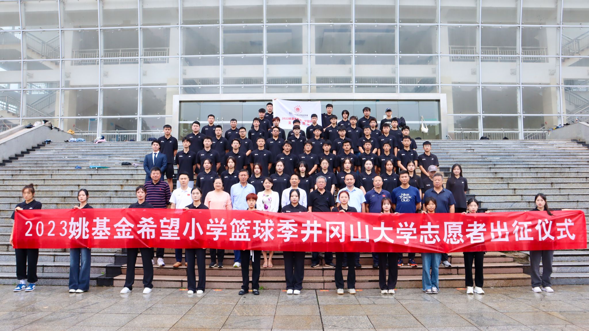 9月15日,学校举行姚基金希望小学篮球季支教志愿者出征仪式,校党委常委、副校长陈小林授旗并宣布出征。江西省青少年发展基金会副秘书长周彦廷致辞,姚基金项目负责人刘新以及63位支教志愿者出席了出征仪式。