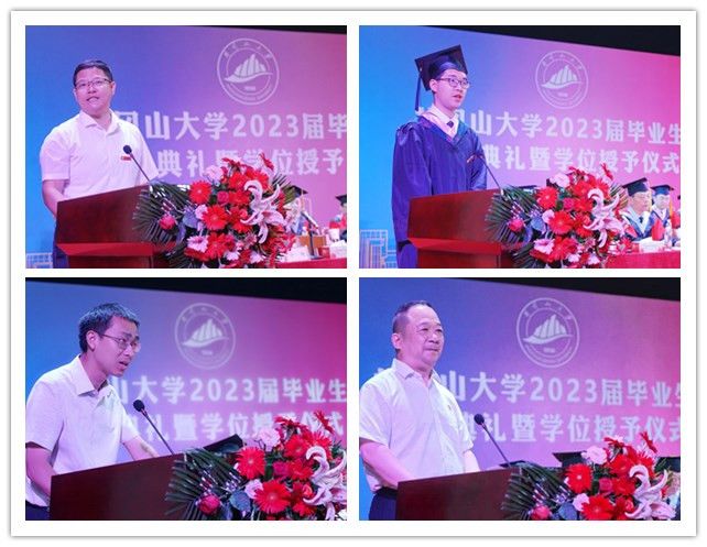 在雄伟的国歌奏响之时,仪式拉开了序幕。校长罗旭彪在典礼上向全体学子殷切寄语。他以“以苦为乐,向苦而行”为题,向2023届全体毕业生提出了以下四点希望:一是希望同学们坚定“以苦为乐”的心态,在“乐于吃苦、敢于吃亏”中磨炼心智。要保持强大的内心,主动走出生活的“舒适区”,在吃苦吃亏中磨炼意志、激发潜能,在凤凰涅槃中浴火重生,让青春在苦难磨砺中绽放绚丽之花。二是希望同学们养成“苦学苦思”的习惯,在“学海无涯、三思后行”中沉淀人生。谨记“广学坚守,勤思敏行”的校训,勤于学习、善于思考,坚持“学思用贯通,知信行合一”,争当科技难题的挑战者和求解者,把论文写在祖国大地上,写在人民对美好生活的向往中。三是希望同学们保持“苦干实干”的作风,在“艰苦奋斗、求真务实”中建功立业。要把真才实学运用到实际生产和生活当中,俯下身子挑重担,卷起袖子加油干,发扬埋头苦干、任劳任怨的实干精神,用青春热血书写无愧于时代的精彩华章。四是希望同学们坚信“苦尽甘来”的道理,在“久久为功,天道酬勤”中实现梦想。不忘党的恩情和国家的栽培,努力涵养“吃苦”的精神,保持“吃苦”的韧劲,“苦学”理论知识,“苦思”时代课题,“苦干”复兴伟业,以奋发有为的姿态走好新时代赶考之路,为实现中华民族第二个百年奋斗目标贡献青春力量。
