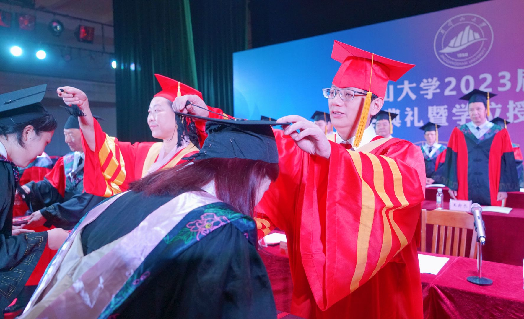 伴随着校歌《我们创造明天的辉煌》美妙的旋律,2023届毕业典礼暨学位授予仪式圆满落幕。仪式结束后,全体师生合影留念。