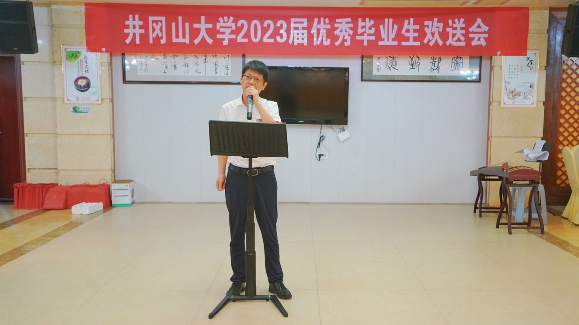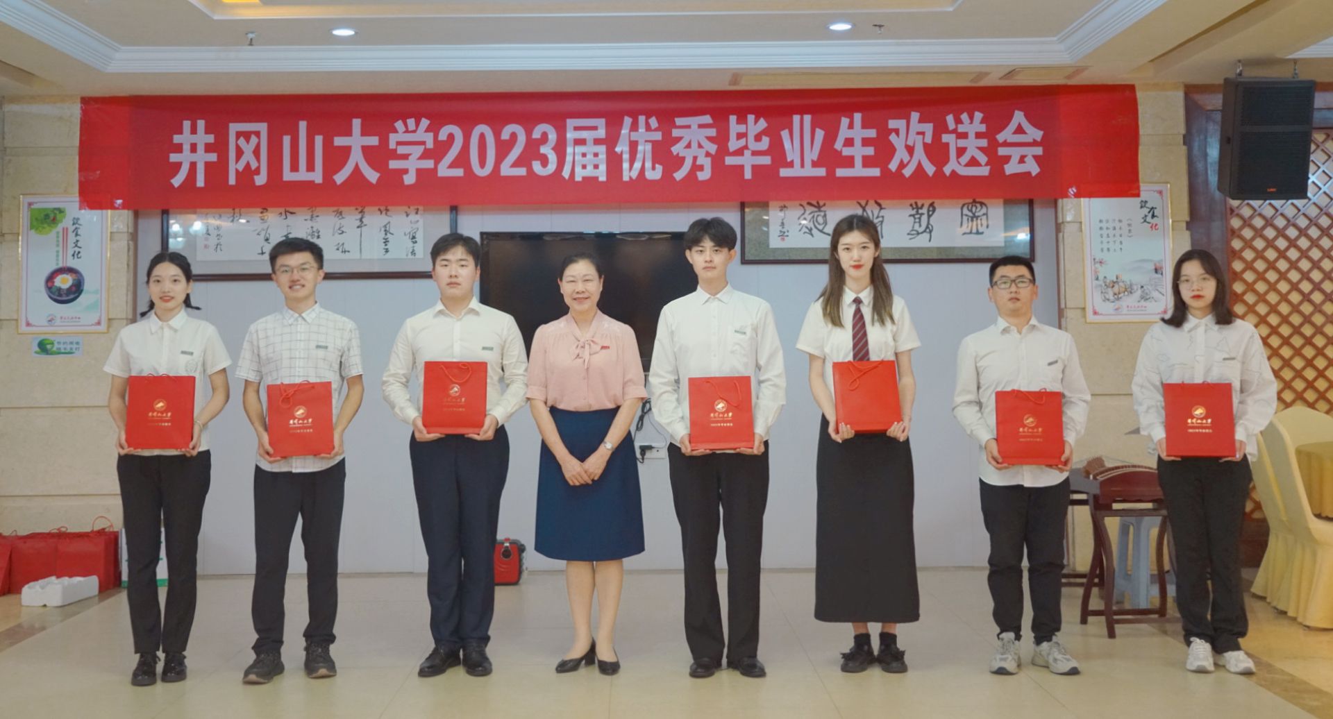6月15日晚,我校2023届优秀毕业生欢送会在新学术交流中心举行,40余名优秀毕业生代表参加。党委书记胡春晓为每一位优秀毕业生代表亲手送上了一份饱含着井大浓浓情意的小礼物,祝愿他们鹏程万里,扬帆远航。党委副书记、校长罗旭彪出席并讲话,党委常委、纪委书记史胜平,党委常委、副校长陈小林、黄俭根、肖宜安、刘利民、冷明,党委常委、宣传部长肖洪海出席,相关部门负责人参加。