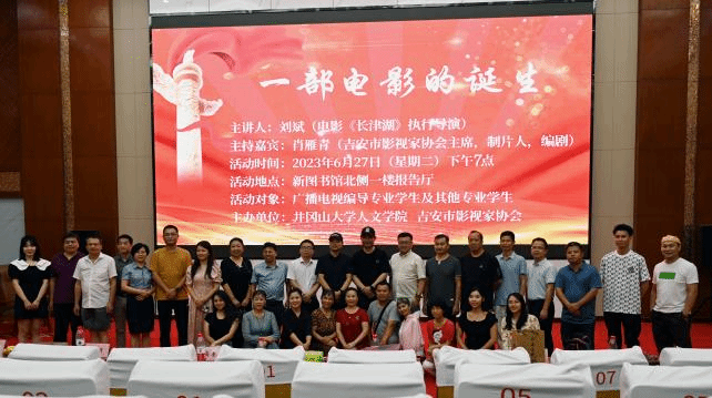 6月27日晚,中国电影家协会会员、吉安市影视家协会理事、电影《长津湖》执行导演刘斌应邀来校举行题为《一部电影的诞生》的学术讲座。井冈山大学人文学院广播电视编导专业及其他专业师生等400余人参加了此次讲座,吉安市文联、吉州区委宣传部、吉州区委网信中心、吉州区文广新旅局、吉安市影视家协会、井冈山大学人文学院等相关领导及嘉宾出席了此次活动。该活动由井冈山大学人文学院、吉安市影视家协会主办。