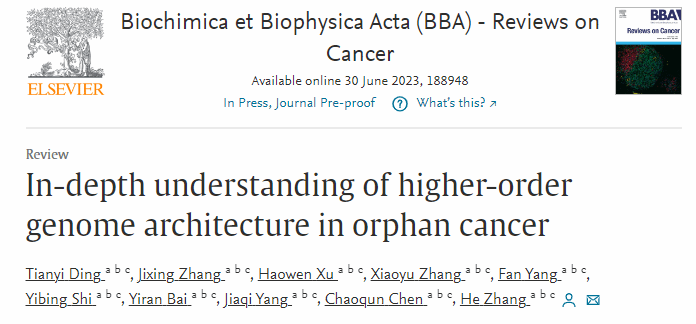 作为同济大学对口支援井冈山大学的联合学术成果,2023年6月30日,井冈山大学校长助理、同济大学张赫教授团队在国际知名期刊Biochim Biophys Acta Rev Cancer(IF 11.2),就上述罕见肿瘤发生机制和靶向治疗问题在线发表了题为“In-depth understanding of higher-order genome architecture in orphan cancer”的文章,从染色质三维构象的视角全面梳理和展望了罕见恶性肿瘤发生机制和靶向治疗研究。