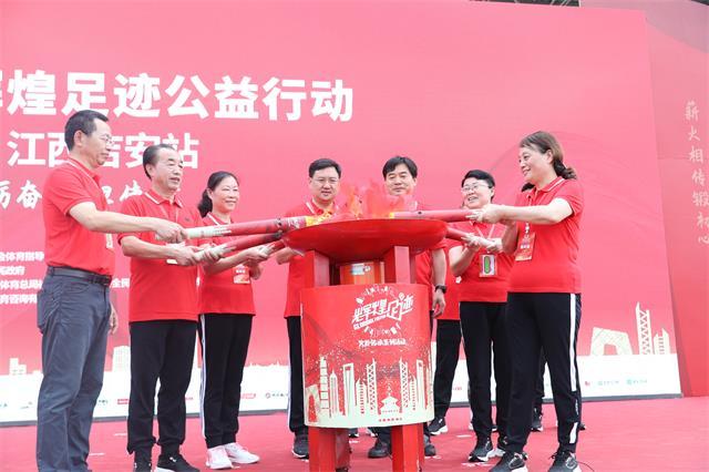 启动仪式后,举行了辉煌足迹火炬传承跑仪式,冯连世将“辉煌足迹·火炬传承”会旗交给赛事地代表周密。郭美荐、冯连世、胡春晓、周密、张雪黎、陆浩、沈冬生手持火炬共同点燃主火炬。周密宣布活动开始,胡春晓手持火炬,领跑第一棒,7名优秀教职工代表手持火炬领跑,井冈山大学900余名大学生志愿者紧随其后,环校慢跑7.1公里,共同庆祝中国共产党成立100周年,迎接新中国72华诞。
