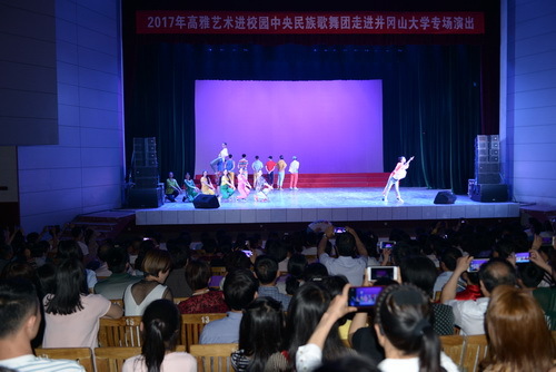 5月17日晚,由教育部、文化部、财政部主办的2017年“高雅艺术进校园”——中央民族歌舞团我校专场演出隆重上演。校领导彭涉晗、曾建平、肖长春、吕玉华、陈小林、黄俭根、苗夺谦和全校1400余名师生一起共赏我国少数民族歌舞艺术。