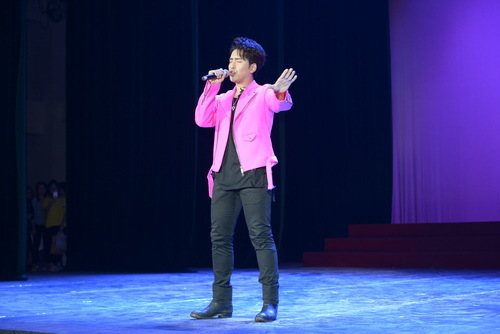 朝鲜族男高音歌唱家、国家一级演员蓝剑走下舞台和观众互动