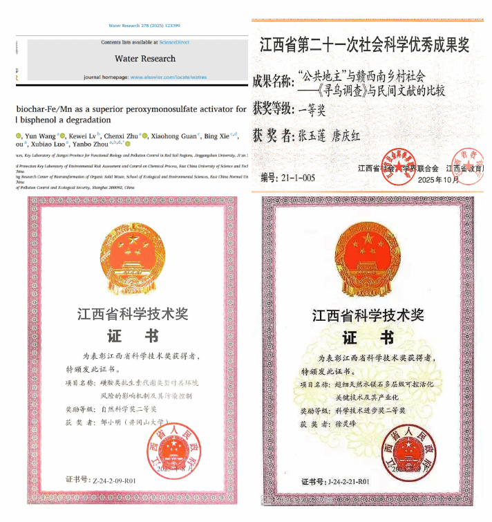 罗旭彪教授团队深耕重金属污染治理二十载,其首创的“靶向分离回收”技术曾获国家技术发明奖二等奖,并将成果应用于长江保护、酸性废液资源化等重大工程,真正将论文写在祖国大地上。团队“扎根产业一线,敢闯技术‘无人区’”的先进事迹获得了《江西日报》的整版专题报道,成为弘扬科学家精神和井冈山精神的典范。团队领衔教授罗旭彪获第二届江西省“创新争先奖”。
