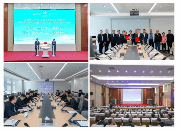2025年10月28日,新时代高校对口支援工作高质量发展论坛暨同济大学对口支援井冈山大学二十周年系列活动在学校隆重开幕。二十年来,两校合作成果丰硕,双方共建的联合实验室飞地正式入驻,技术转移分中心挂牌成立,标志着对口支援从单向帮扶升级为深度融合、协同创新的2.0模式。