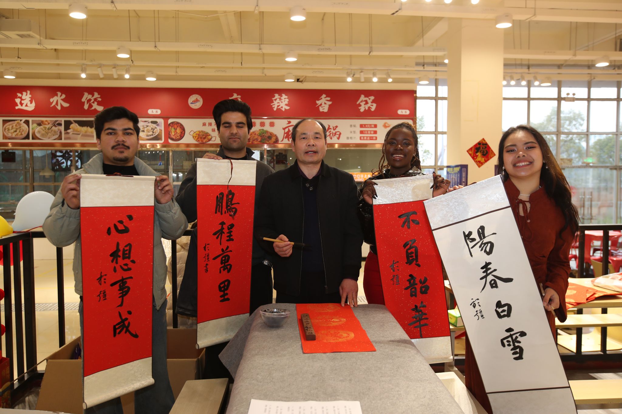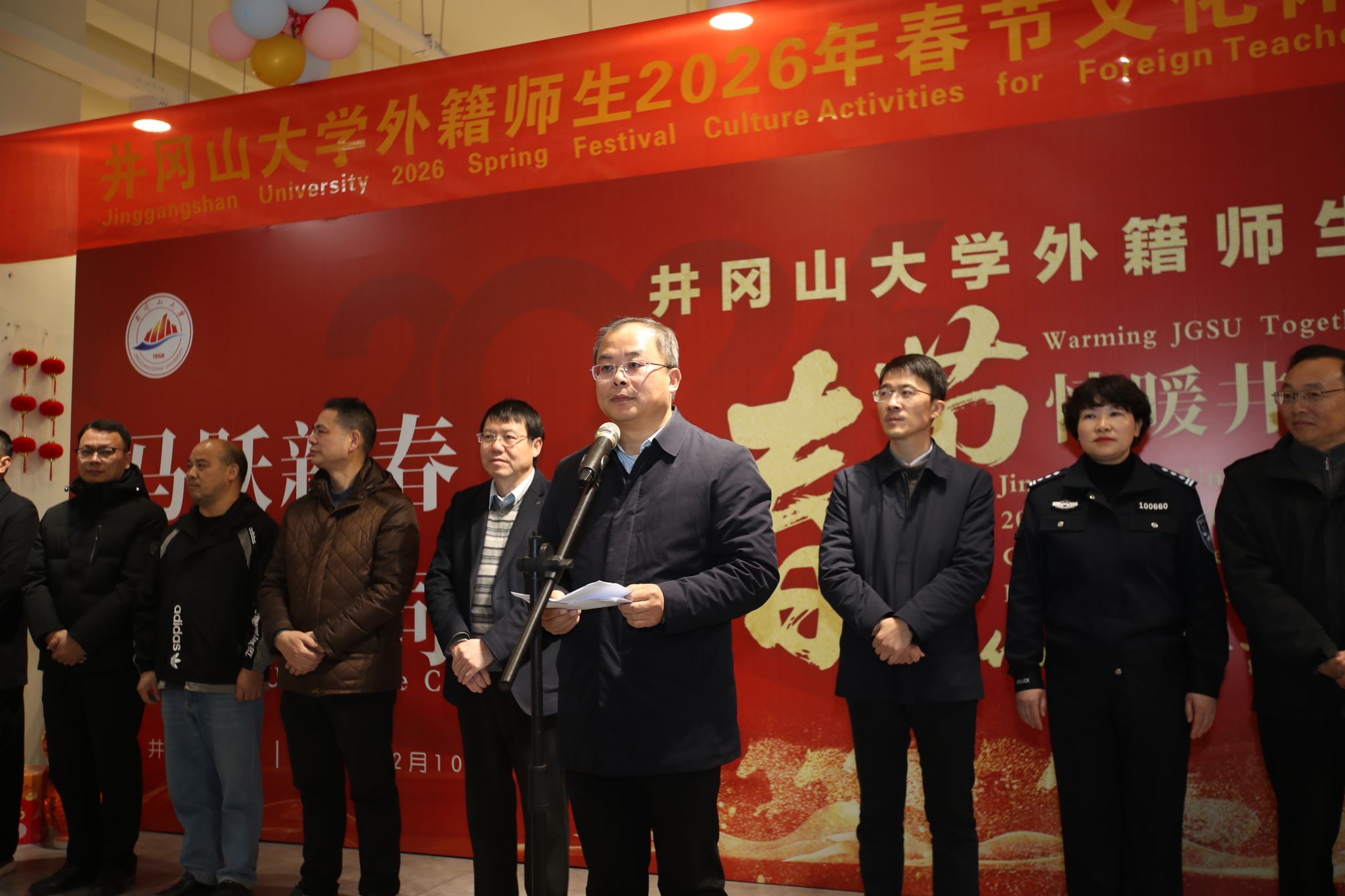 为促进中外师生文化交流、营造校园家园氛围,2月10日,学校特别举办“马跃新春,五洲同心,情暖井大”春节文化体验活动。校党委常委、副校长隋岩出席并向全体国际师生致以最诚挚的新春祝福。党委常委、宣传部部长肖洪海,吉安市科技局党组成员、副局长张之桦,市公安局出入境管理支队支队长易锐等领导出席,学校相关职能部门、学院负责人、国际学院全体教职工及在校国际师生共同参与本次活动,在温馨互动中迎接中国农历新年。