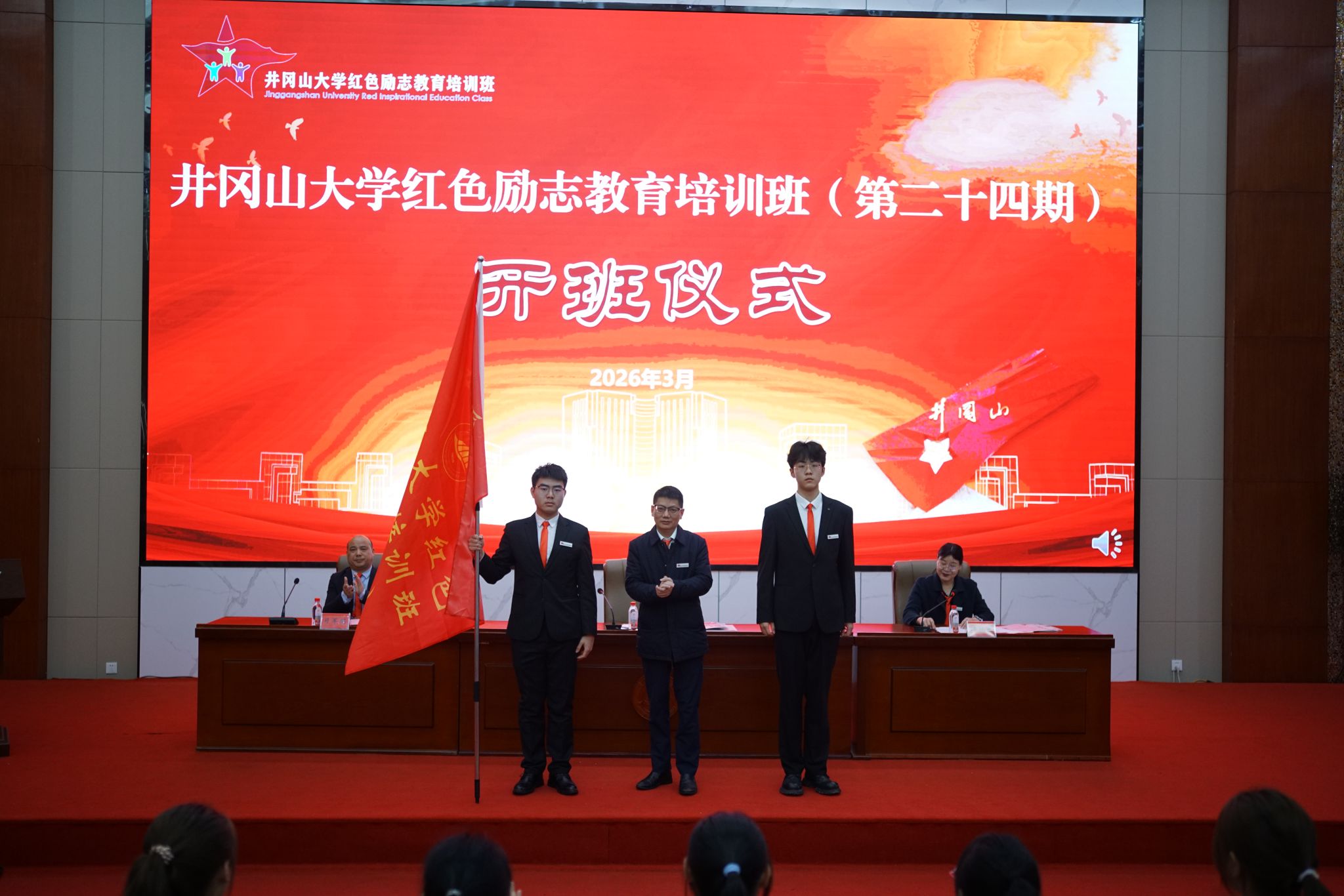 3月21日上午,我校红色励志教育培训班(第二十四期)开班仪式在新图书馆学术报告厅举行。校党委书记罗旭彪出席开班仪式,为本期培训班授旗并讲话。校党委常委、副校长何桂春主持仪式。学生工作部(处)相关负责人,第二十四期培训班班主任、辅导员、辅导员助理及全体学员参加活动。