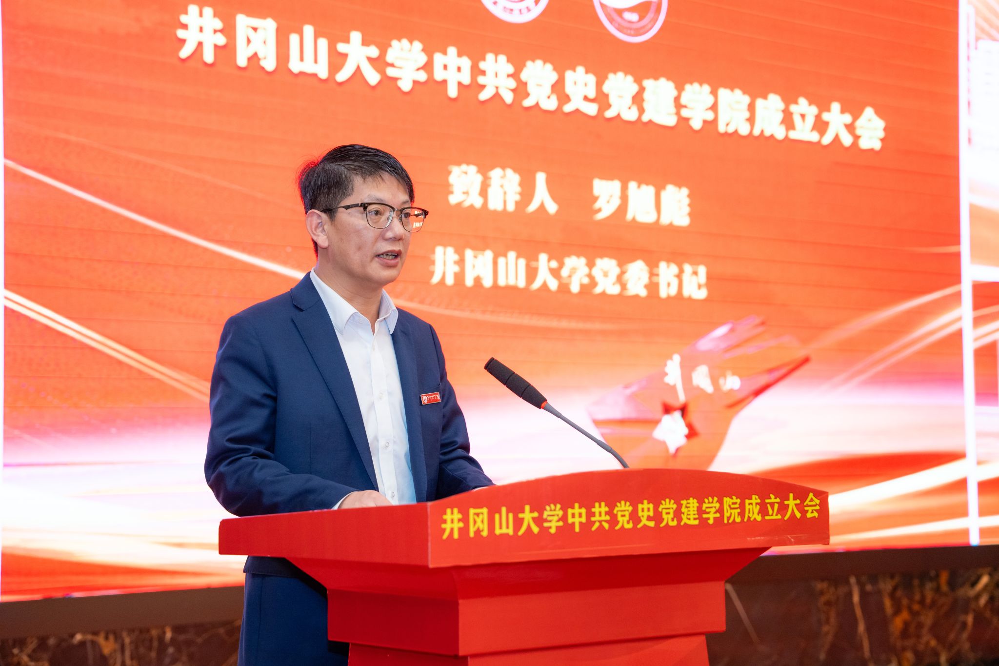 中共江西省委常委、省委组织部部长庄兆林,中共中央党史和文献研究院副院长孙东升,中国人民大学党委书记张东刚,中共吉安市委书记罗文江,中共江西省委组织部副部长、省人大常委会代表工委主任刘光华,中共江西省委教育工委书记吴永明,中共江西省委宣传部一级巡视员龚建文,西南大学原党委书记黄蓉生,中国人民大学党委副书记青格勒图,井冈山大学党委书记罗旭彪共同为“井冈山大学中共党史党建学院”揭牌;井冈山大学党委书记罗旭彪、中国人民大学党委书记张东刚,中共江西省委教育工委书记吴永明,中国人民大学原党委书记、中国延安精神研究会常务副会长兼秘书长靳诺(线上),中共中央党史和文献研究院副院长孙东升先后致辞,标志着这一学科建设新平台正式启航。成立大会由井冈山大学党委副书记肖宜安主持。来自北京大学、中国人民大学、武汉大学、中央党校、西南大学、同济大学、华南师范大学和有关地方党史研究室、革命纪念馆、干部学院的60余所高校、科研及出版机构的110余名专家学者,还有学校党政班子成员、师生代表共计240人参加了成立大会。