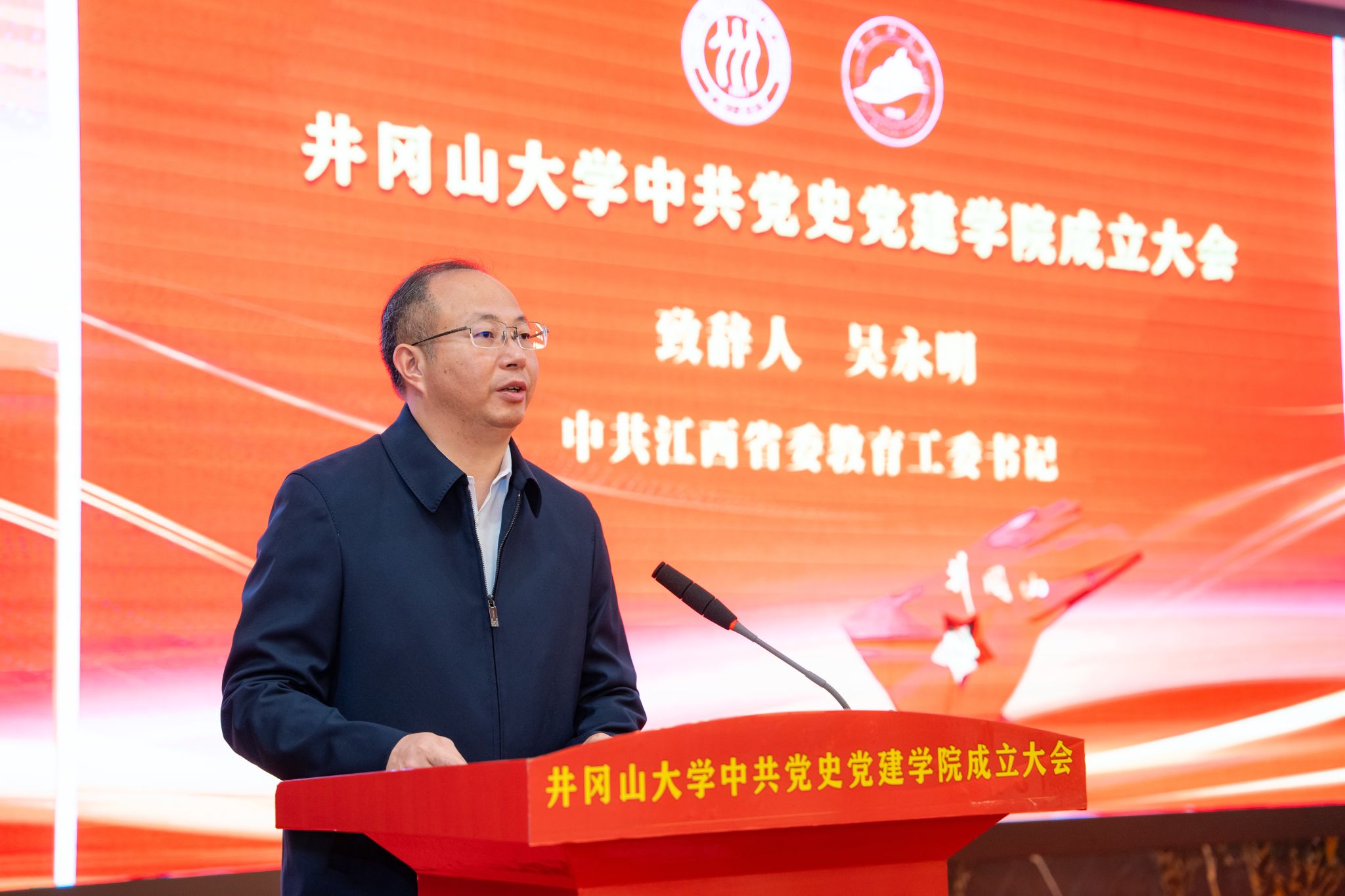 吴永明书记指出,学院的成立是江西省高等教育发展进程中的一件大事,对深化党史党建研究、传承红色基因、培育时代新人具有重要战略意义。省委教育工委、省教育厅将全力支持学院建设,力争将其打造成为省内领先、国内一流的高水平教学研究机构和人才摇篮。