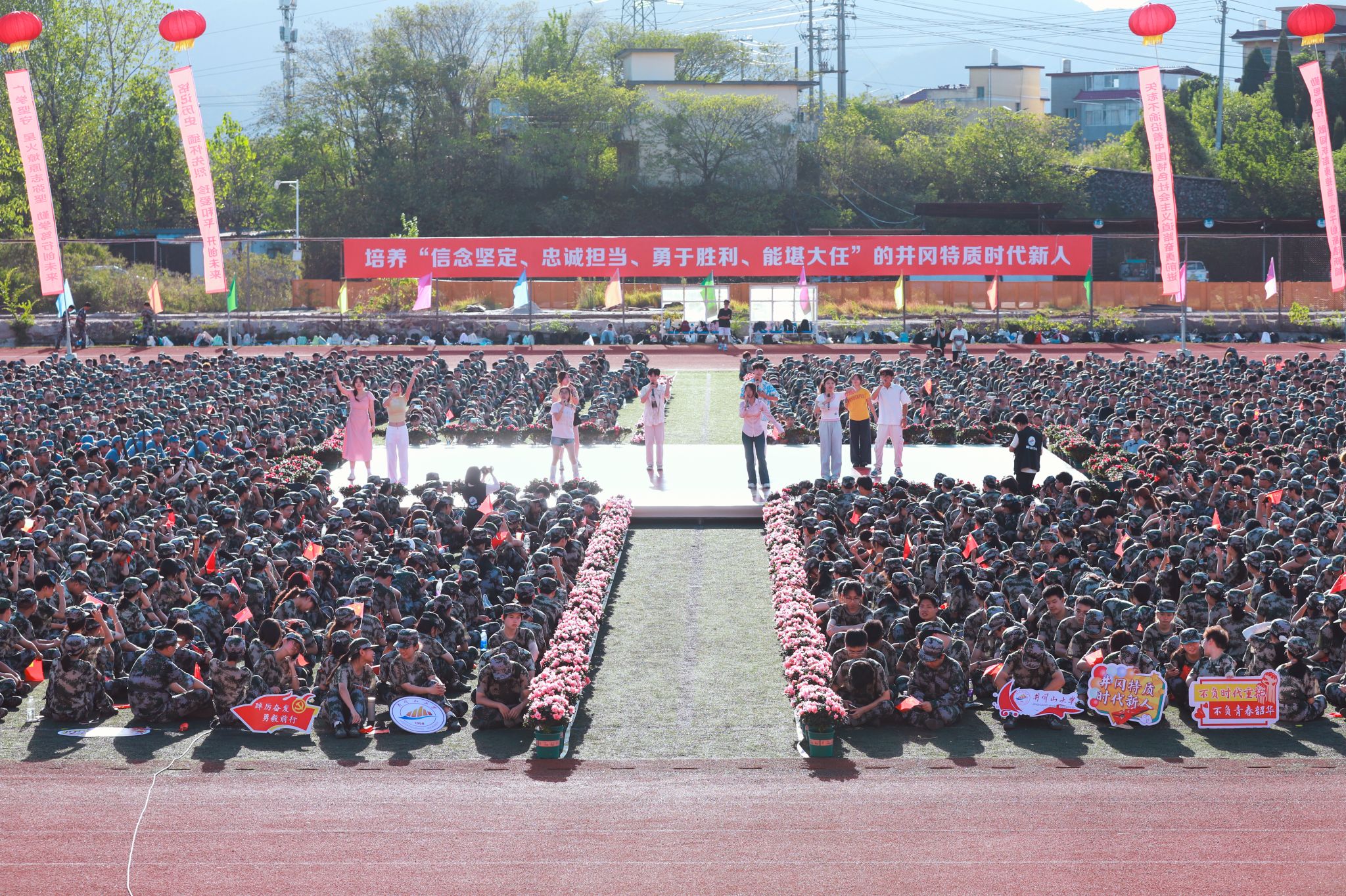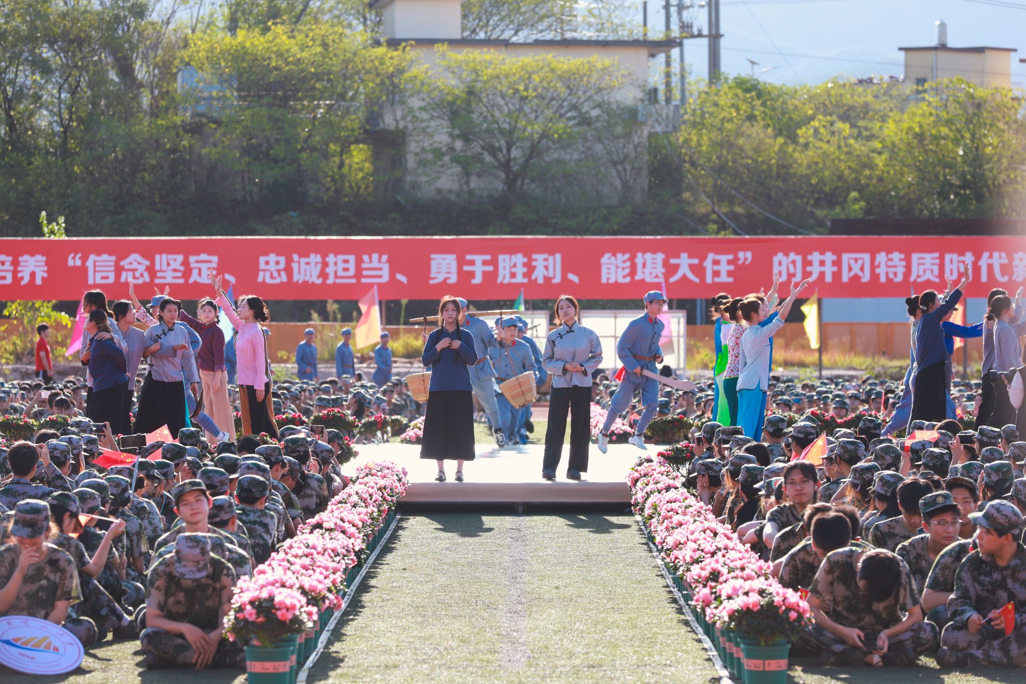 为了让新生感受校园关怀和浓厚的红色文化氛围,典礼仪式开始前,现场进行了振奋人心的歌舞表演和微思政表演。大学生艺术团的《十送红军》让新生们仿佛置身于那段激情燃烧的岁月,用故事向全场新生诠释了井冈山精神的内涵。在飘扬的红旗下,青春与理想交织,每一位新生都将成为这片红色热土上新的播种者,携着历史的厚重与时代的召唤,在井冈山大学这片沃土上点燃信仰之光,书写属于自己的青春答卷。