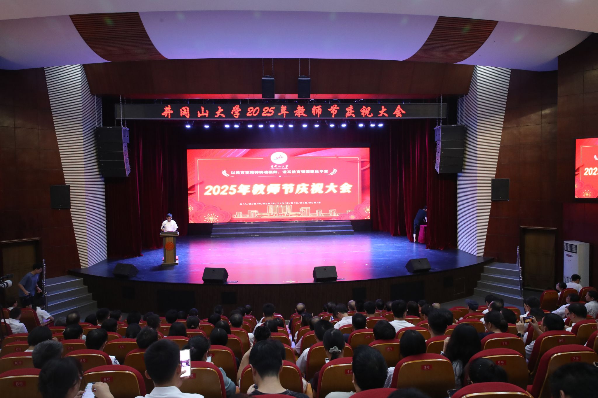 各部门主要负责人、各基层党委书记、各学院院长,2025年全体新进教师代表、2024-2025学年“发展进步奖”获奖单位代表、“突出贡献奖”获得者、2025年长期从教教师代表、2024-2025学年退休教职工代表、各学院教师代表、学生代表等,共计300余人参加大会。