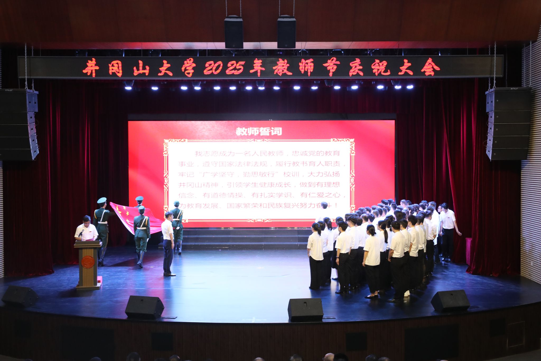 罗旭彪强调,百年大计,教育为本。教育大计,教师为本。推进教育强国建设,推动学校高质量发展关键靠教师。希望全校上下坚持以德立身、以德立学、以德施教,用高尚的师德过硬的学识引领培育学生成长成才,共同谱写红土圣地教育事业的新篇章。