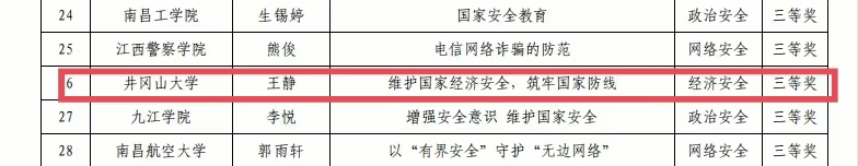 近日,接省教育厅通知,我校外国语学院教师陈丰讲授的国家安全视频公开课《共筑安全网,守护国与家》荣获2025 年全省大中小学国家安全视频公开课(本科)“一等奖”、商学院教师王静讲授的《维护国家经济安全,筑牢国家安全防线》荣获国家安全视频公开课(本科)“三等奖”,张鑫、李春燕、张睿杰三名学生荣获国家安全知识网络答题(本科)“学习之星”荣誉称号。