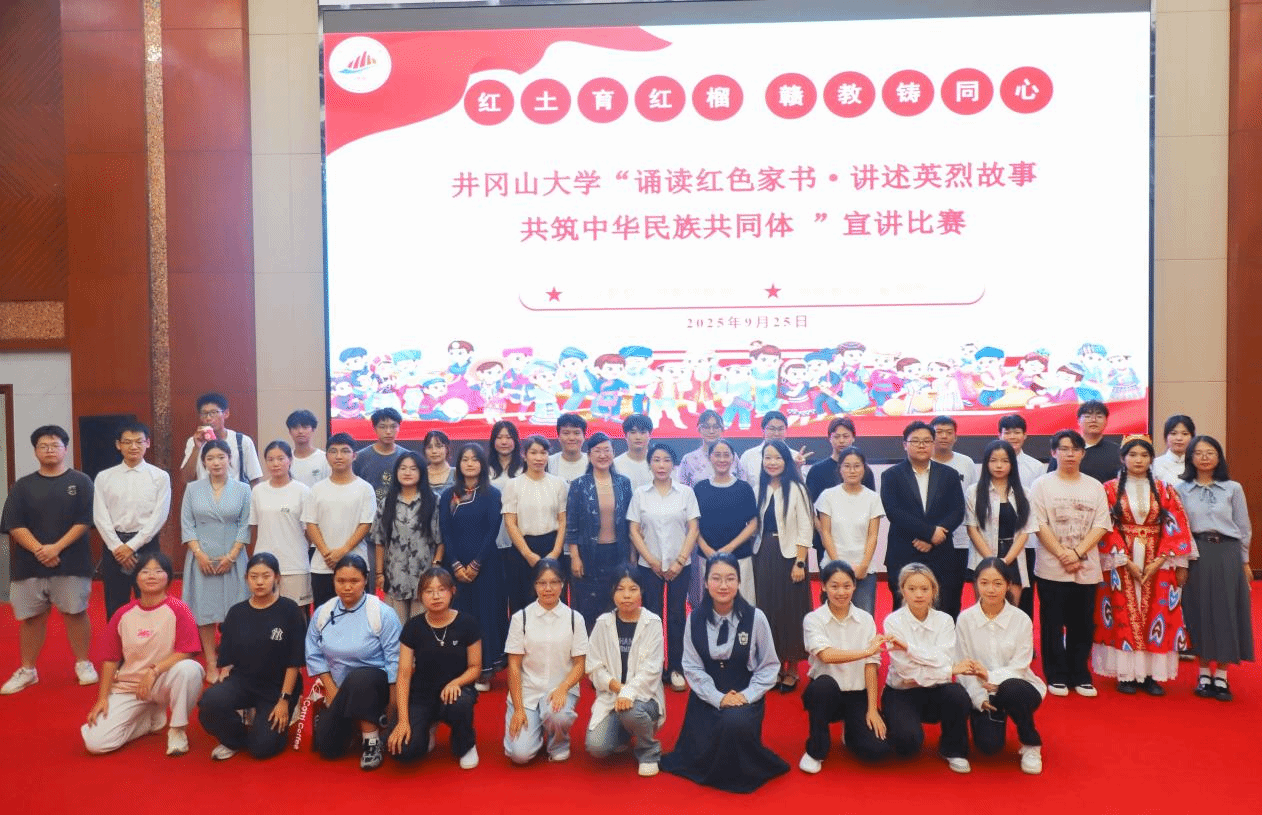 9月25日,井冈山大学“可爱的中国·同心筑梦”红色歌曲欢唱比赛与“诵读红色家书·讲述英烈故事 共筑中华民族共同体”宣讲比赛圆满落幕。两项赛事由校党委统战部主办,艺术学院、校团委分别协办,自启动以来吸引各民族学生踊跃参与,跨民族组队成为赛场最鲜明的特色,赛事以红色文化为纽带,生动展现各民族学子携手同心的精神风貌,为纪念中国人民抗日战争暨世界反法西斯战争胜利80周年写下鲜活的青春注脚。
