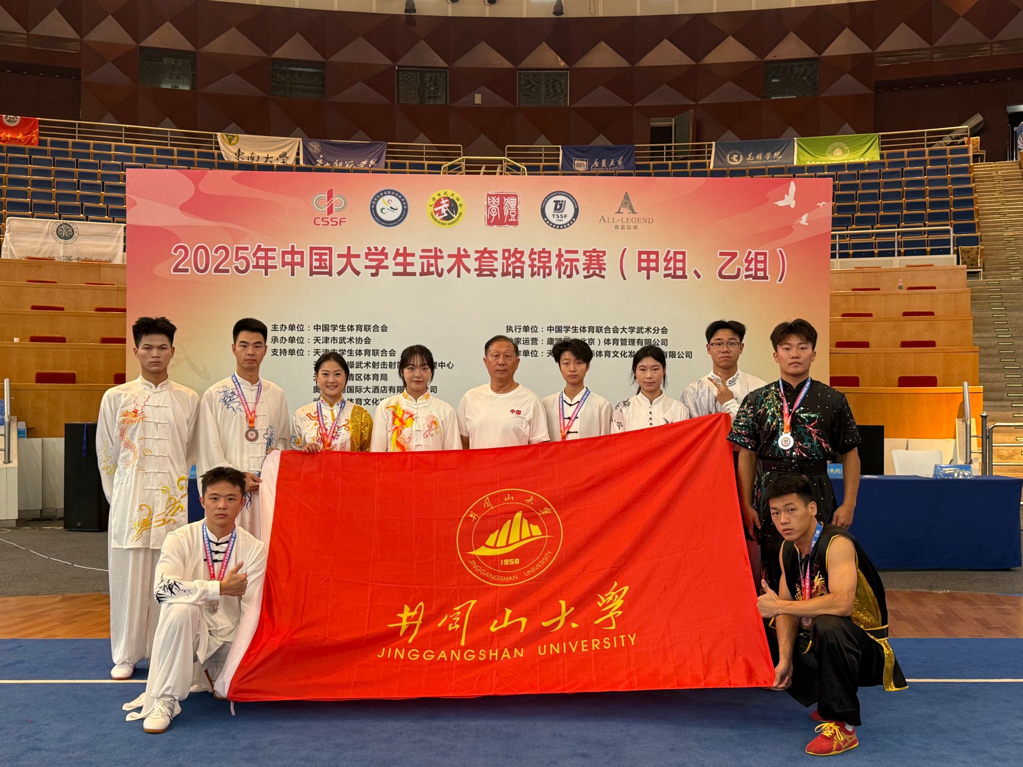 7月25日至8日1日,2025年中国大学生武术套路锦标赛在天津市武清区盛大开幕,来自全国各地241所高校的2000余名运动员、教练员齐聚一堂,共同参与这场武术盛会,参赛人数创下历史新高。比赛项目涵盖了传统武术与现代武术的多个类别,包括长拳、刀术、剑术、棍术、南拳、南刀、南棍、太极拳、太极剑等全能项目,以及形意拳、八卦掌、八极拳等丰富多样的传统拳术和器械项目。我校派出了10名运动员参赛,经过紧张激烈角逐,我校代表队共斩获1金4银1铜、2个单项第4名、1个第5名、1个第6名、2个第7名,1个第8名。刘青和杨晶两位运动员获得优秀运动员称号,余友儒老师获优秀教练员称号。