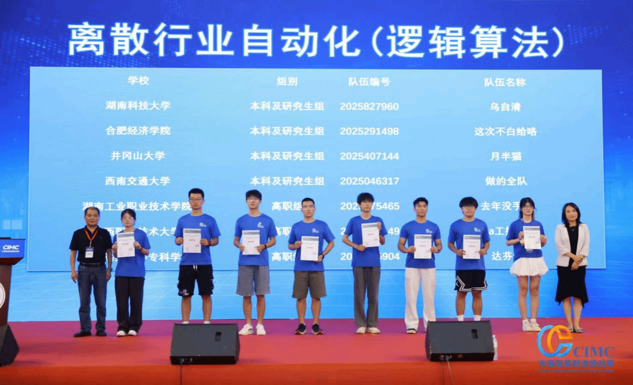 8月11日-15日,第十九届“西门子杯”中国智能制造挑战赛(CIMC)全国总决赛在太原理工大学举行,我校机电工程学院吴文通、旷虚波老师指导古鸣、黄欣鹏、吴泽彪3名同学,凭借扎实的专业功底与勇于挑战的创新精神,在离散行业自动化方向(逻辑算法)赛项获得本科及研究生组特等奖。