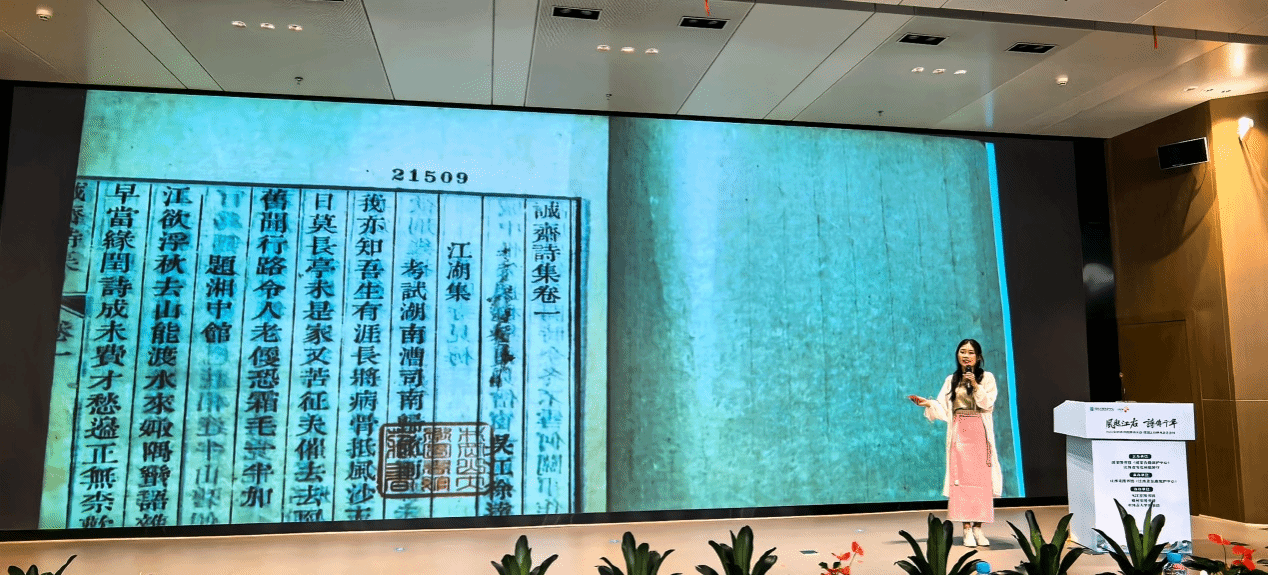 8月19日,2025年中华传统晒书大会•首届江右晒书会主会场启动仪式在江西省图书馆举行。校图书馆精选的珍贵古籍《诚斋诗集》(杨万里著、清嘉庆刻本)以视频背景和现场讲述的方式参与展示,向300余位与会专家和读者展现了学校深厚的文化底蕴与江右文脉的独特魅力。