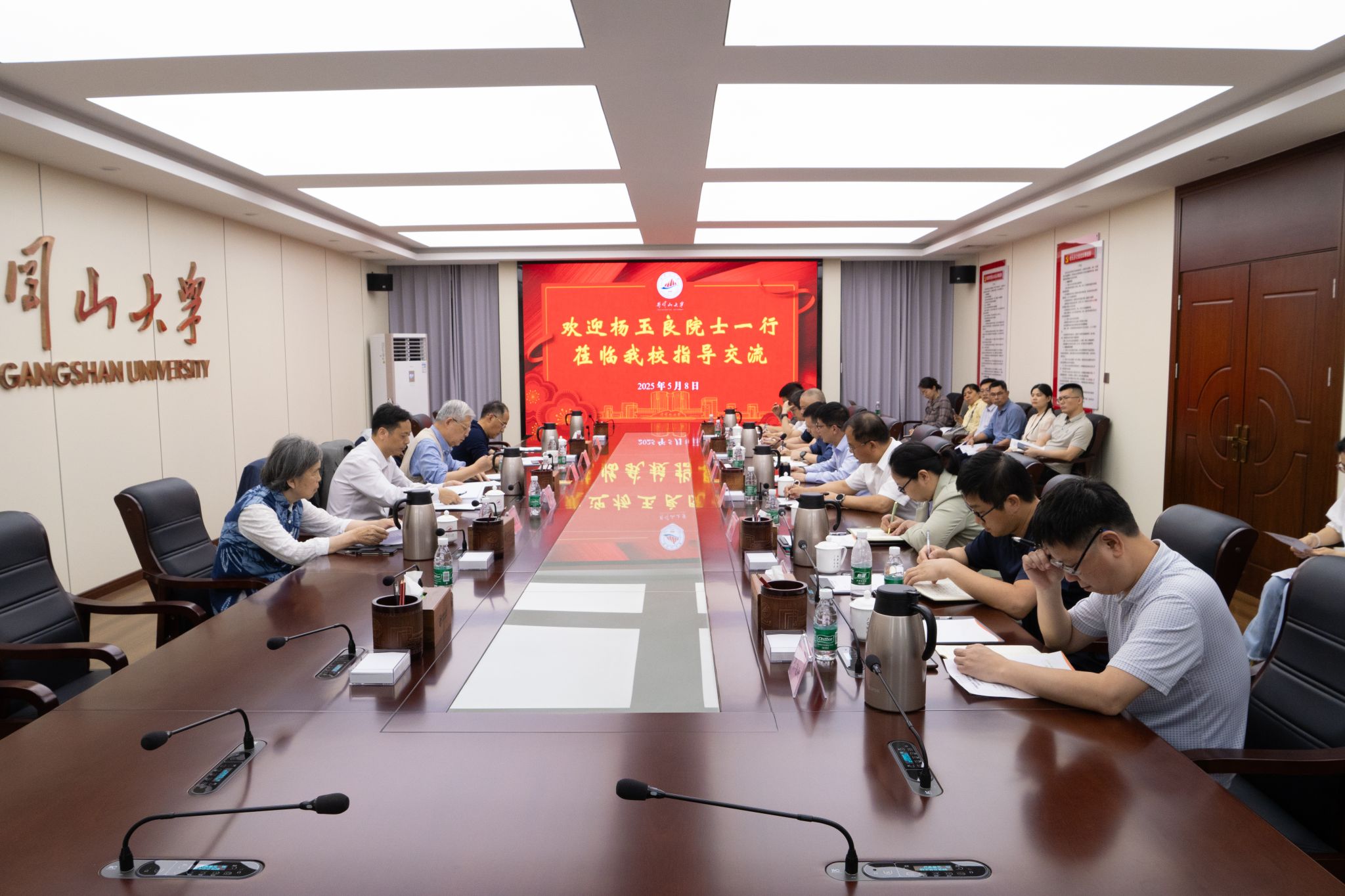 杨玉良院士等与我校领导和相关学院负责人以及骨干教师座谈交流。罗旭彪校长在交流中围绕井冈山大学发展历程、学科建设及未来规划做重点介绍,回顾学校曲折发展背景,阐述学科布局特色及近年来在科研领域取得的突破性成果。他代表校方提出三项合作请求:一是希望院士团队在人才引进与学科建设中提供指导与资源支持;二是恳请院士团队在学校博士授权单位申报工作中给予专业指导;三是期待院士团队推荐优秀青年学者加盟,强化学校科研人才梯队建设。