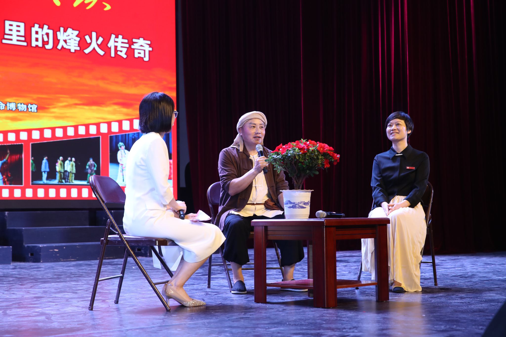沙龙环节,党史专家、剧目导演、戏曲演员逐一上台,与师生展开多维度的艺术思政对话。井冈山革命博物馆何小文教授结合剧目演绎的经典故事,剖析革命信仰如何从个体坚守升华为群体精神图腾。《游园惊梦》《江姐》《血火熔炉》的导演徐明深入解读赣剧,分享新派赣剧创作的故事;《誓旗》中贺页朵饰演者杜晓林现场展示采茶戏中角色的塑造和演绎技巧,音乐舞蹈史诗《井冈山》导演、我校艺术学院蔡海红副教授介绍了活动中学生们演绎的《成长》片段编排的初衷和心得,解析现代舞如何转化为革命叙事的视觉语言,从不同角度加深了观众对红色经典和非遗文化的理解。