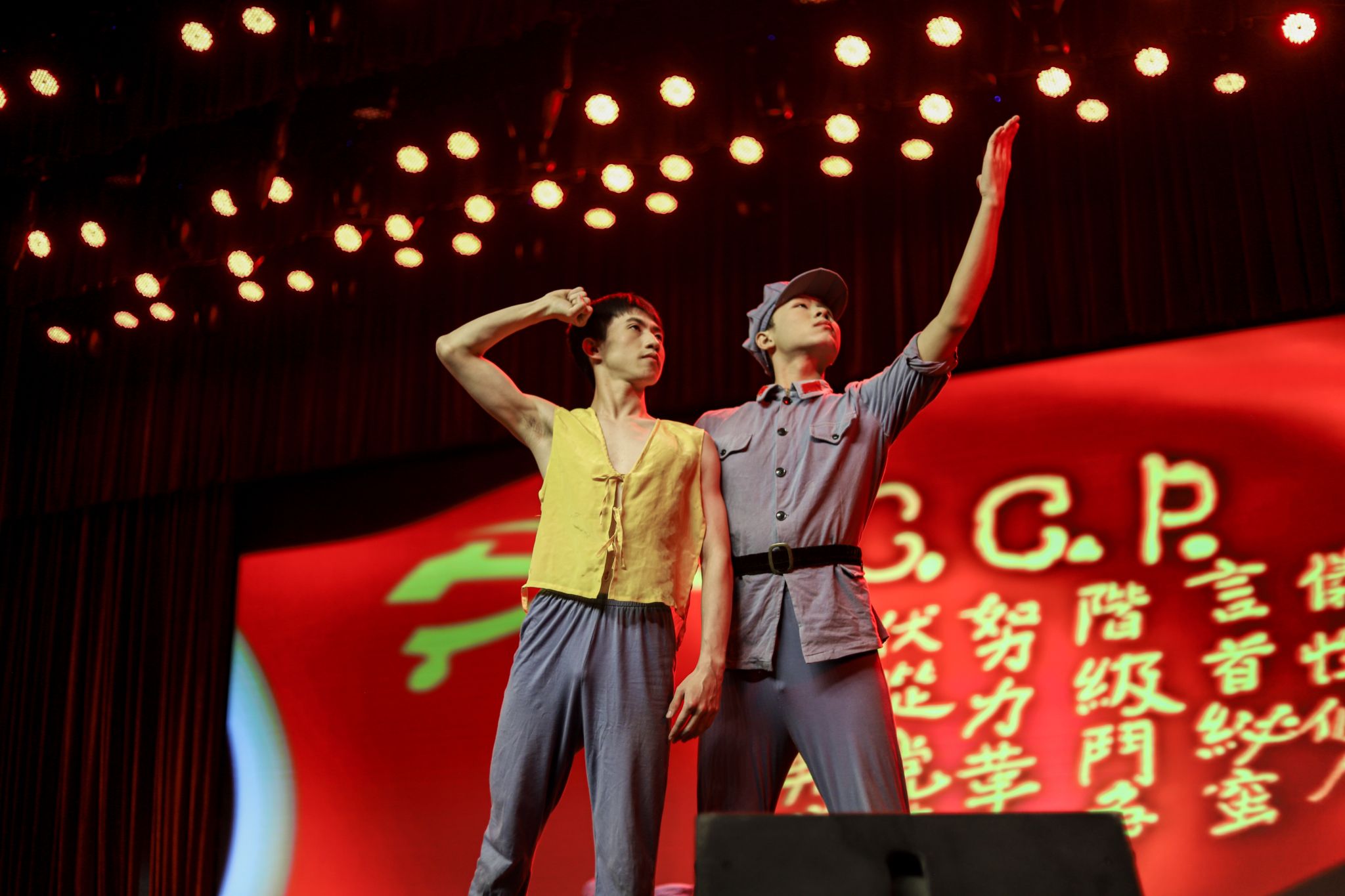 舞台上,赣剧院演员身披霓裳,以婉转的唱腔演绎《游园惊梦》片段,水袖翻飞间,传统戏曲的华美与韵味跃然眼前。当灯光转暗,永新县采茶戏剧团用质朴的乡音唱响《誓旗》,讲述井冈山斗争时期普通农民贺页朵冒死保存入党誓词的故事,演员们脚下泥土色的布鞋与铿锵的誓言,让观演的学生们感受到革命火种在民间扎根的力量。艺术学院创编的音乐舞蹈史诗《井冈山》选段《成长》,以少年在血火中蜕变为意象,与戏曲艺术形成跨时空对话,凸显红色基因在新时代的青春表达。