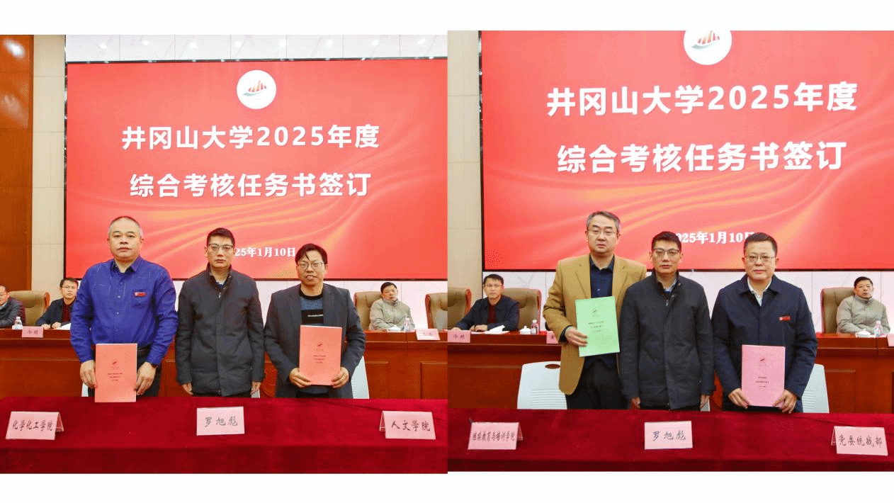 1月10日,学校2024年度综合考核总结表彰暨2025年度综合考核任务书签订会在图书馆北附楼一楼报告厅召开。校党委副书记、校长罗旭彪出席并讲话,党委副书记肖宜安主持,全体党政班子成员黄俭根、李军、冷明、彭西洪、敖四江、段学民、肖洪海、刘梁军、梁景宏、张赫等出席会议,全校正、副处级干部,全校综合考核办公室全体人员参加会议。