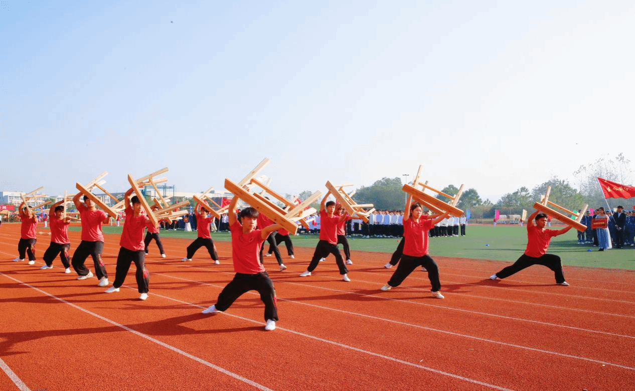 校舞龙队带来精彩的舞龙表演,罗旭彪“为祥龙点睛”,表达对我校龙腾虎跃的殷切希望。随后的群众体育展演中,体育学院带来的传统艺术“庐陵民间板凳拳”和“庐陵民间绝学九齿耙”点燃了观众的激情;建筑工程学院的舞蹈表演《我爱我的祖国》表达了对祖国的热爱,给群众带来一场视觉盛宴,与放飞蓝天的红气球一同讴歌井大、礼赞祖国;化学化工学院带来的舞蹈《唱支山歌给党听》温暖人心,用青春姿态书写爱国爱党的赤子之心。他们以充满活力的表演为运动会增添了喜庆气氛,赢得了现场观众的阵阵掌声,实现艺术与体育的完美结合。最后,罗旭彪宣布运动会正式开幕,各项赛事随即展开。