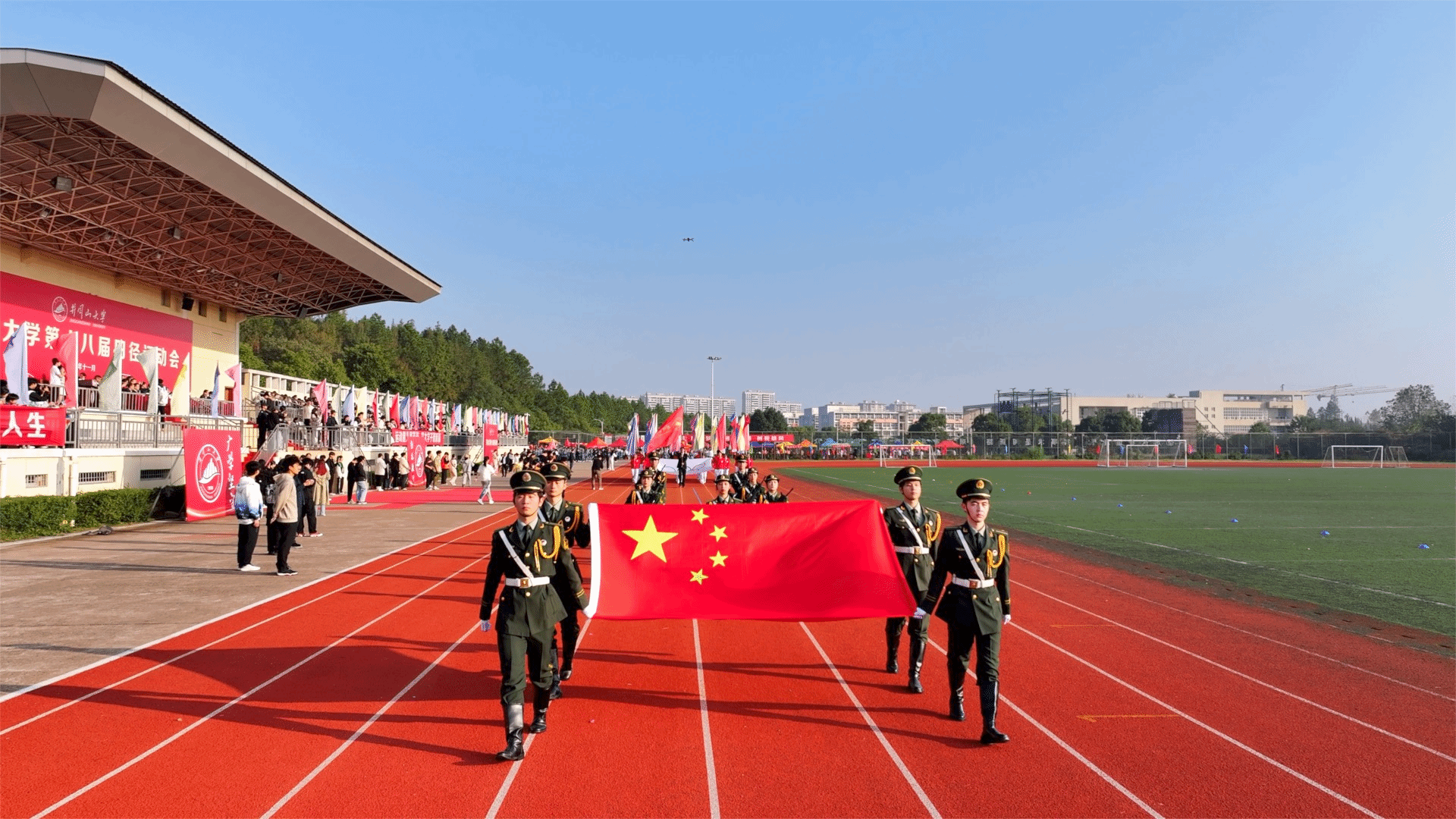 11月6日,我校第十八届田径运动会在北区田径场正式开幕。校党委副书记、校长罗旭彪,在家的校党政班子成员肖宜安、黄俭根、李军、彭西洪、敖四江、肖洪海、刘梁军、梁景宏出席开幕式。体育工作委员会全体成员、学生代表、全体裁判员、运动员以及其他工作人员参加开幕式。开幕式由敖四江主持。体育学院教师董宗培、电子与信息工程学院2023级计算机1班黄童谣同学分别代表全体裁判员、运动员宣誓。