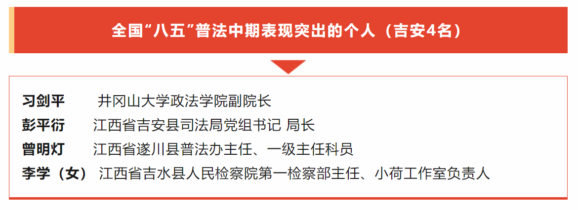 近日,司法部、全国普法办印发了《关于通报表扬全国“八五”普法中期表现突出的单位和个人的通知》,对全国1793个表现突出的单位和1556名表现突出的个人予以表扬。其中,我校习剑平老师获全国“八五”普法中期表现突出个人的荣誉称号。